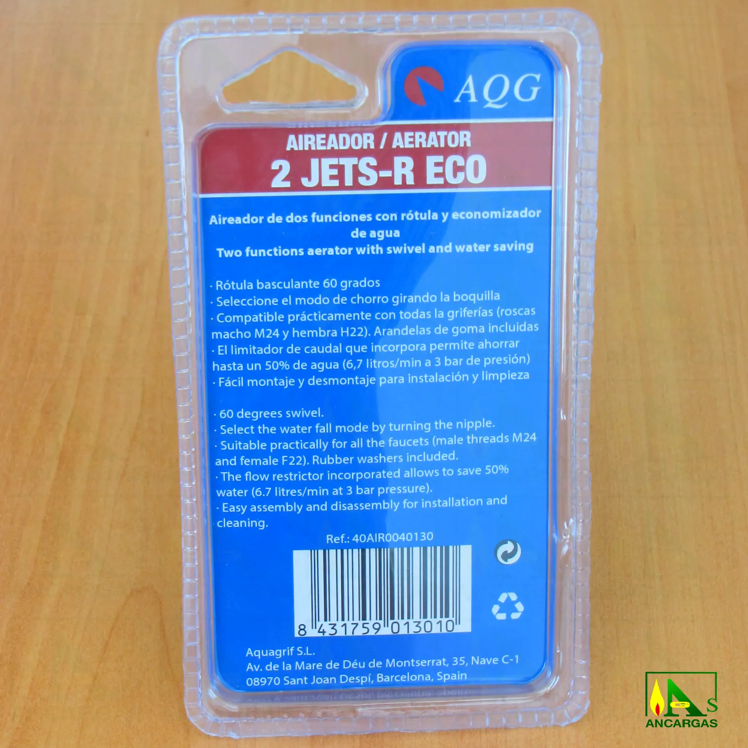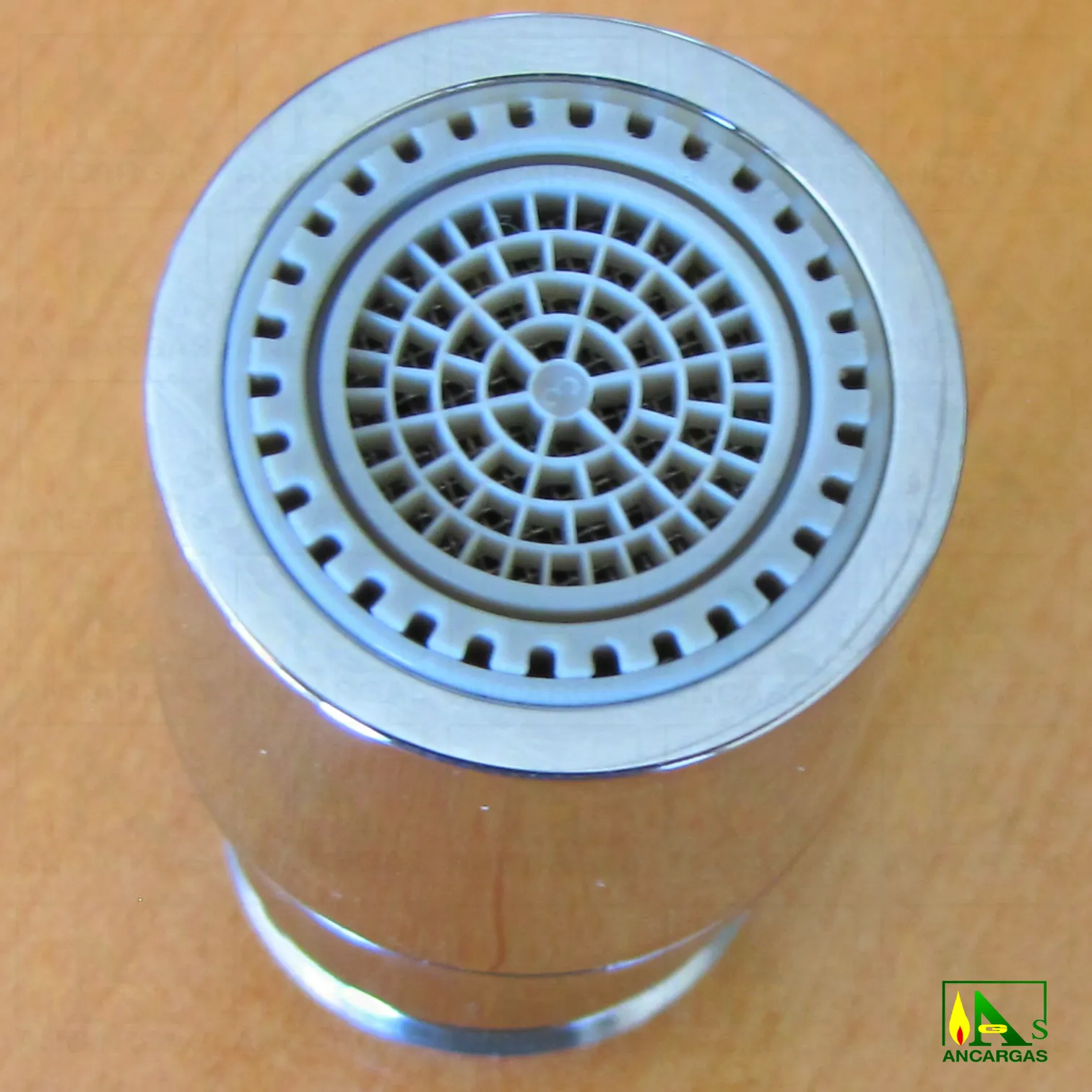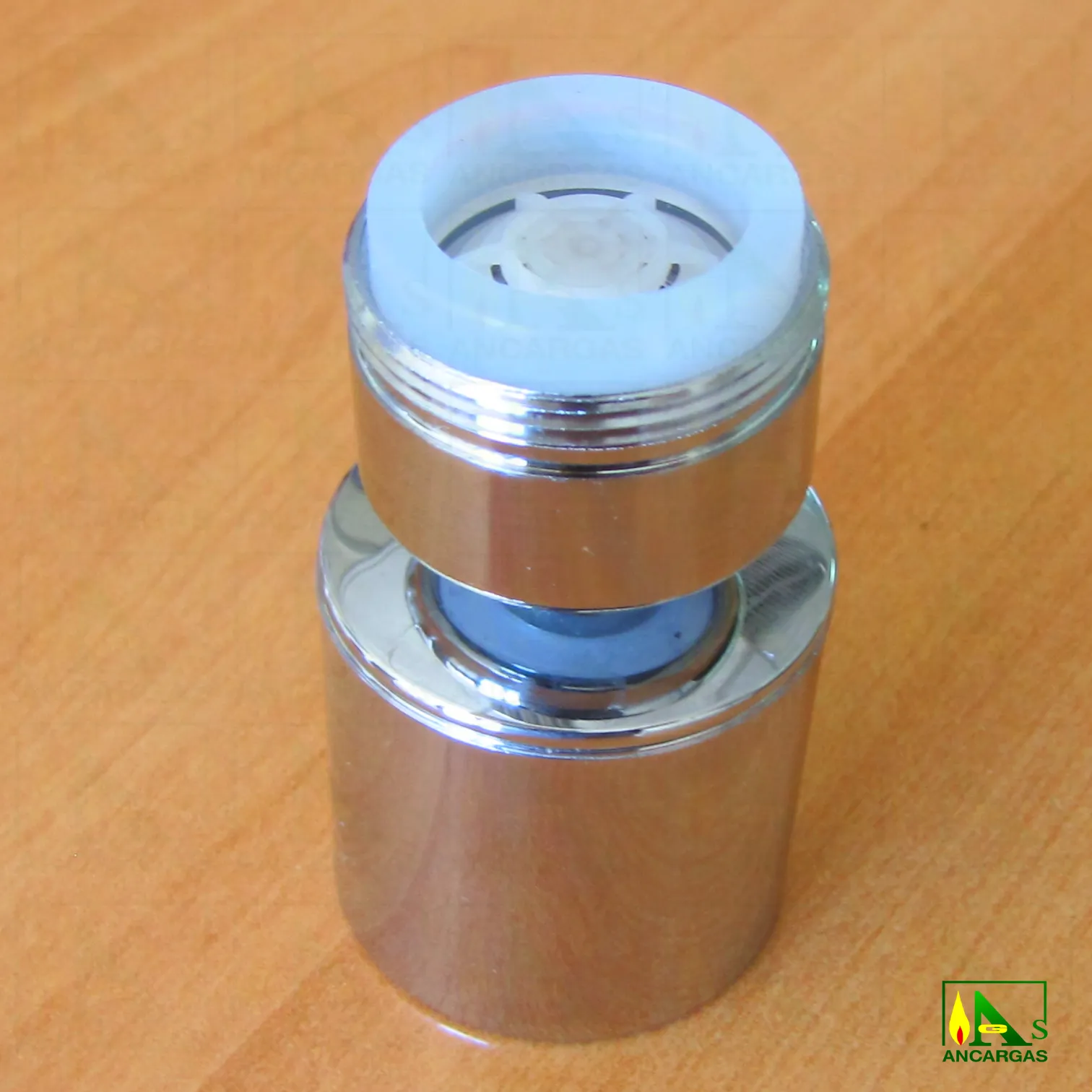 Aireador economizador de caudal de agua con rótula. Aireador de dos funciones con limitador de caudal 7 l/m. Compatible con macho M24 y hembra M22