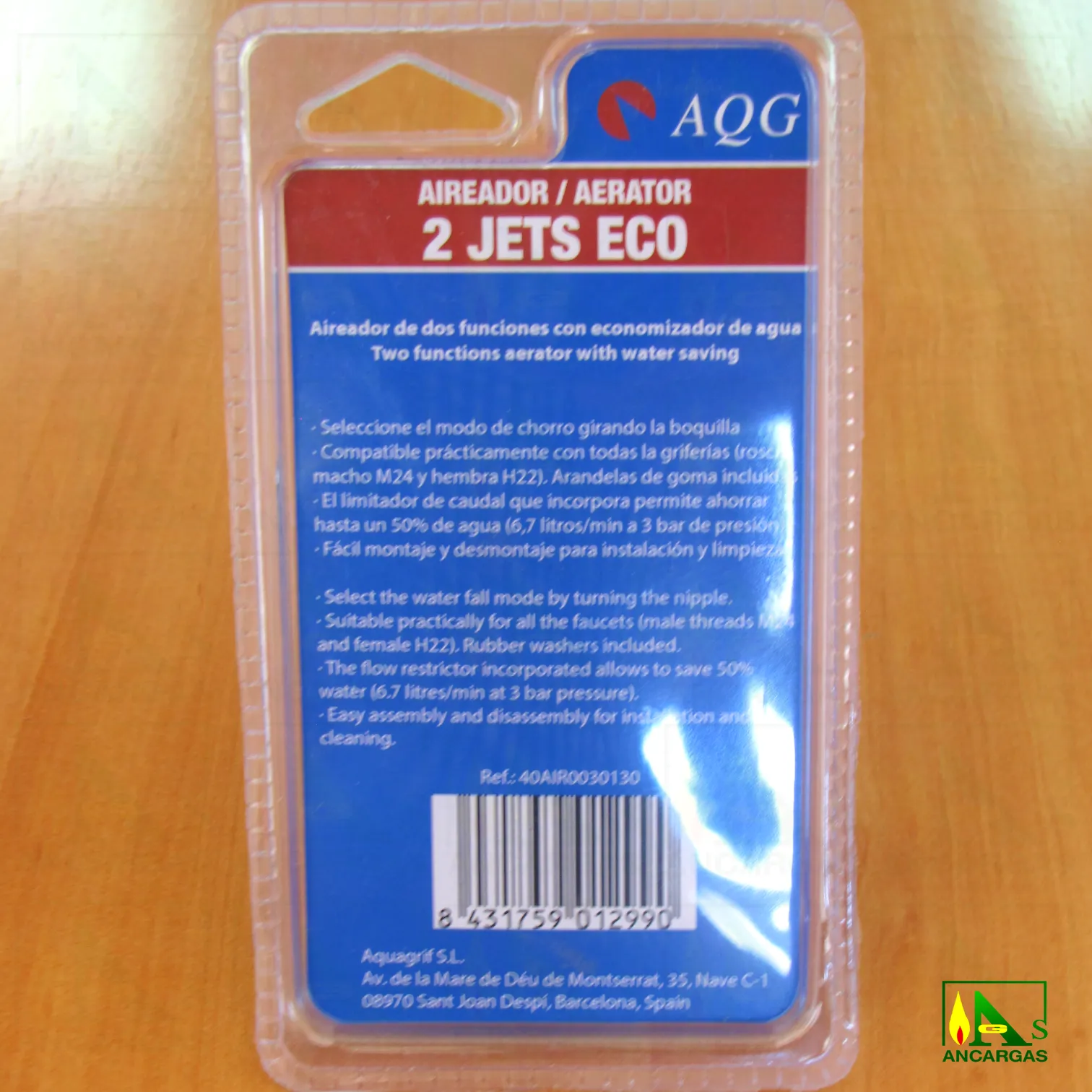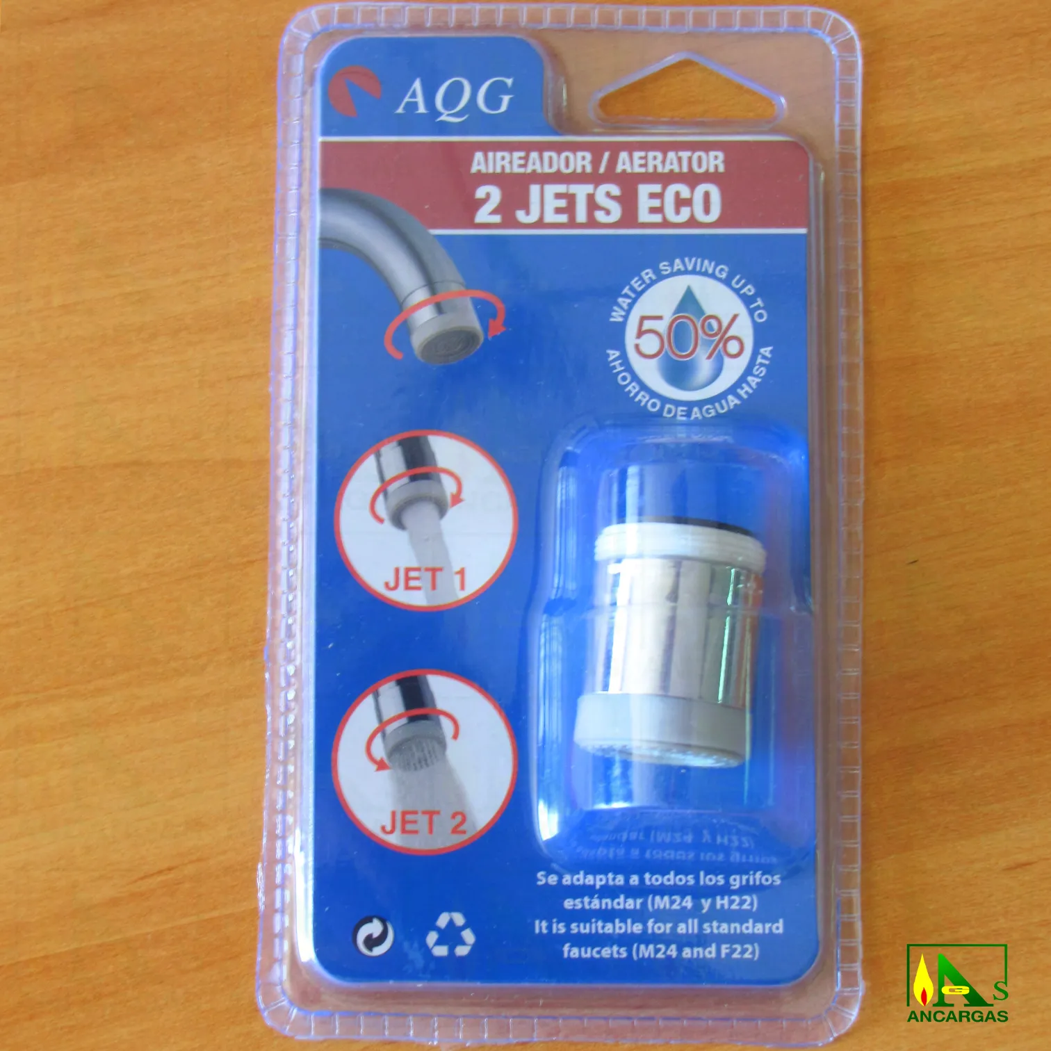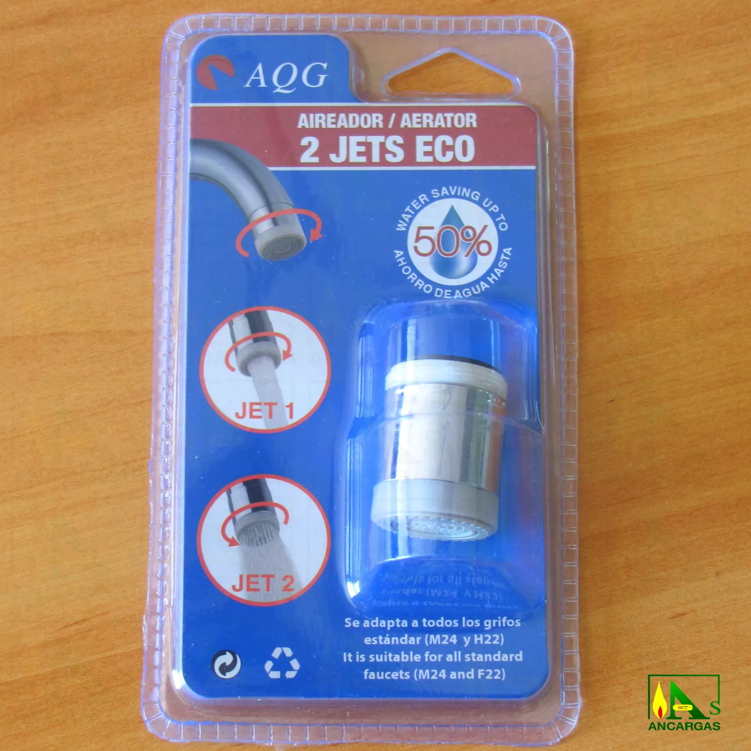 Aireador economizador de caudal de agua. Aireador de dos funciones con limitador de caudal 7 l/m. Compatible con macho M24 y hembra M22