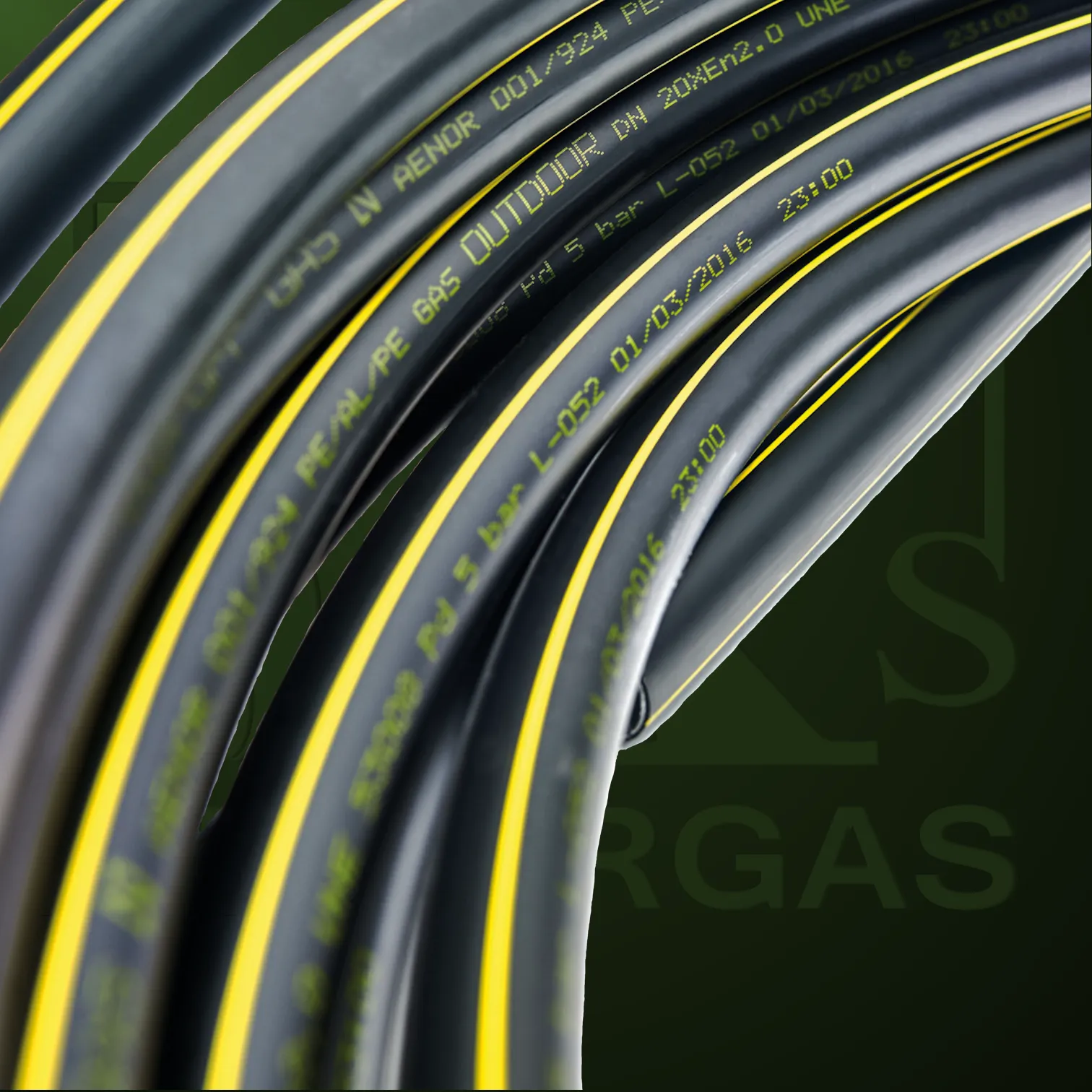 La tubería multicapa PE-AL-PE para gas está fabricada según la norma UNE 53008.