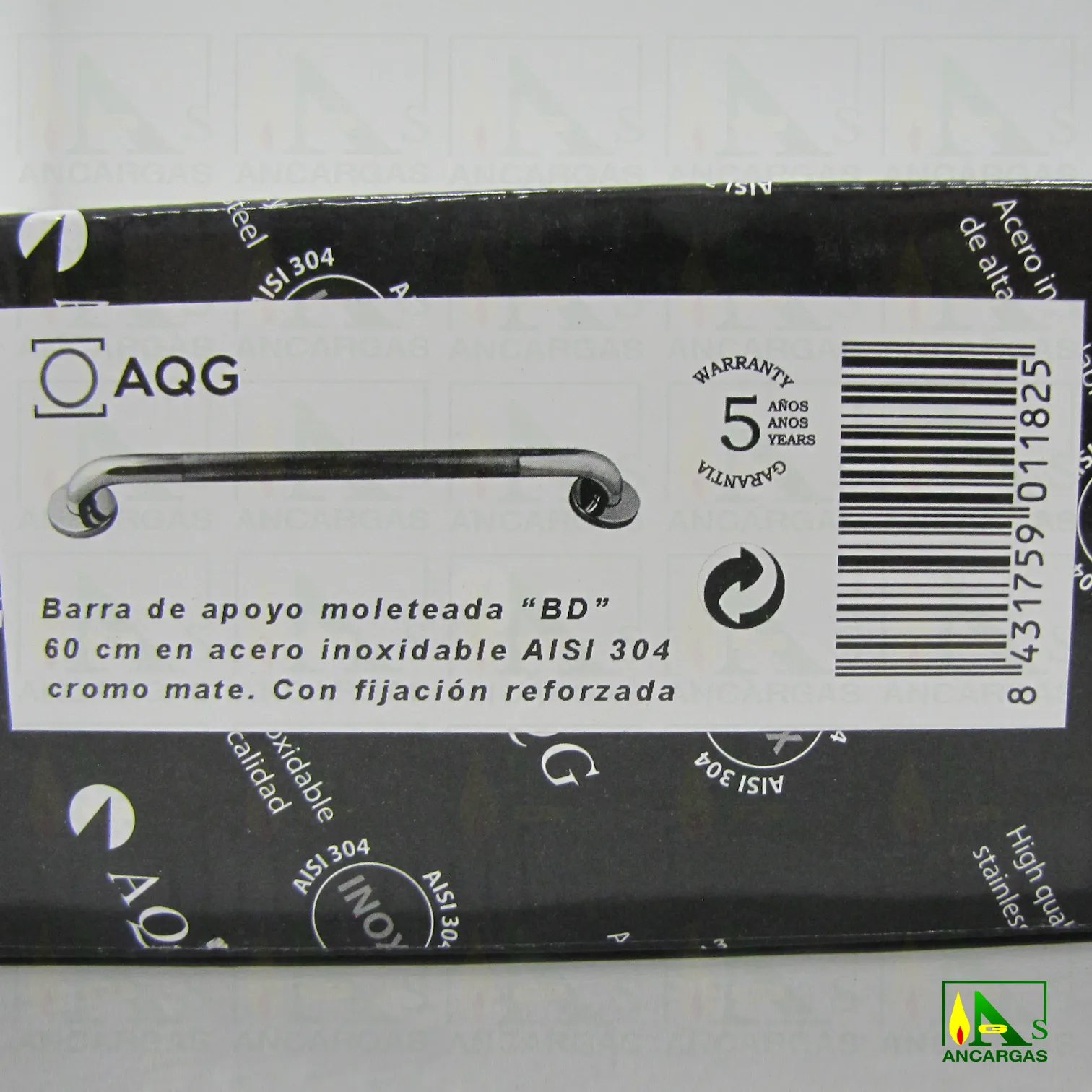 Barra recta asidero en acero inox moleteada de 60 cm