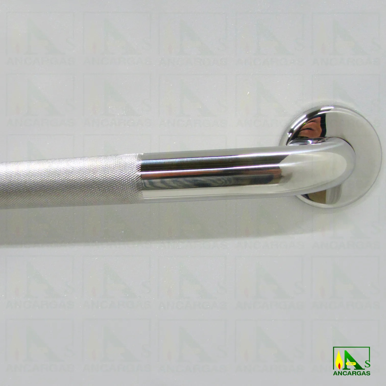 Barra recta Modelo BD ø32 mm moleteada de 60 cm acero inoxidable AISI304 con fijación reforzada. Cromado