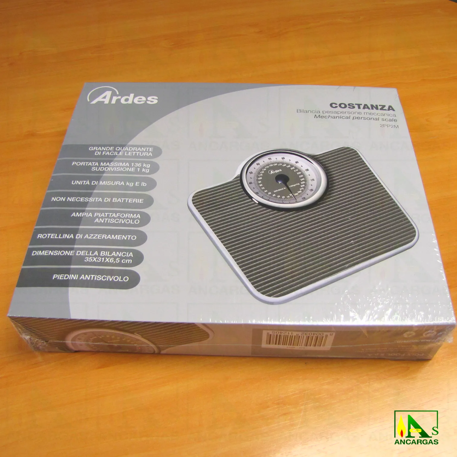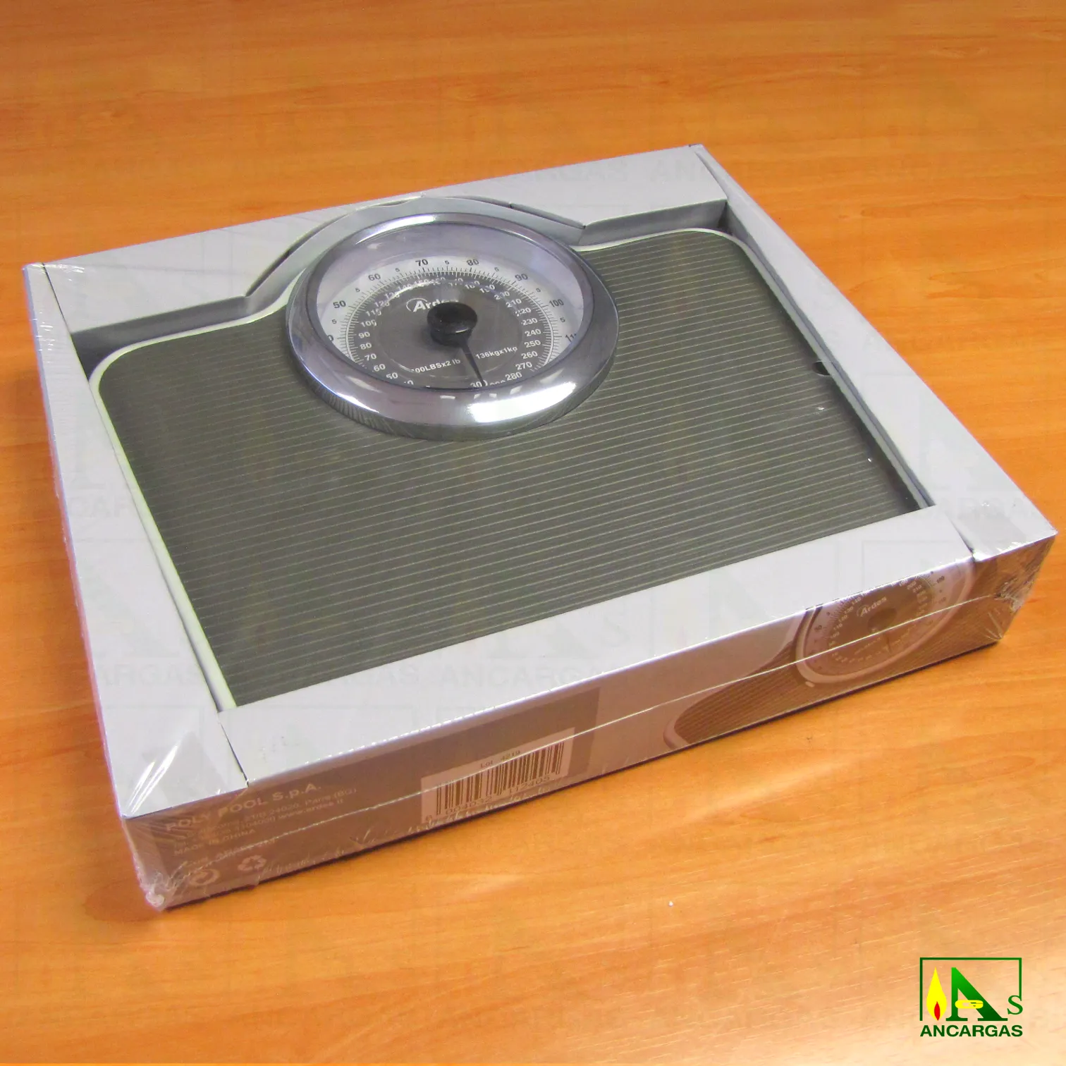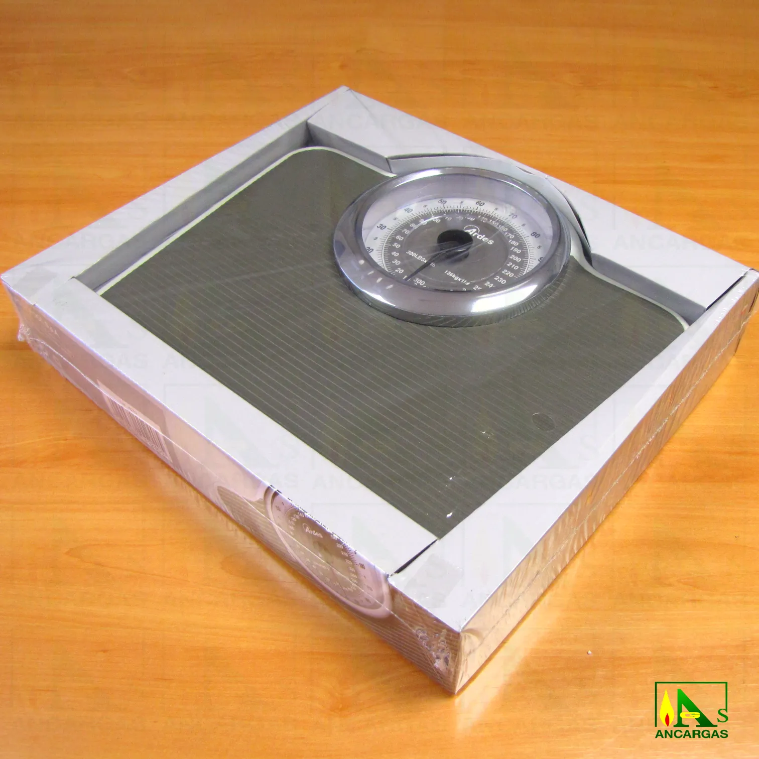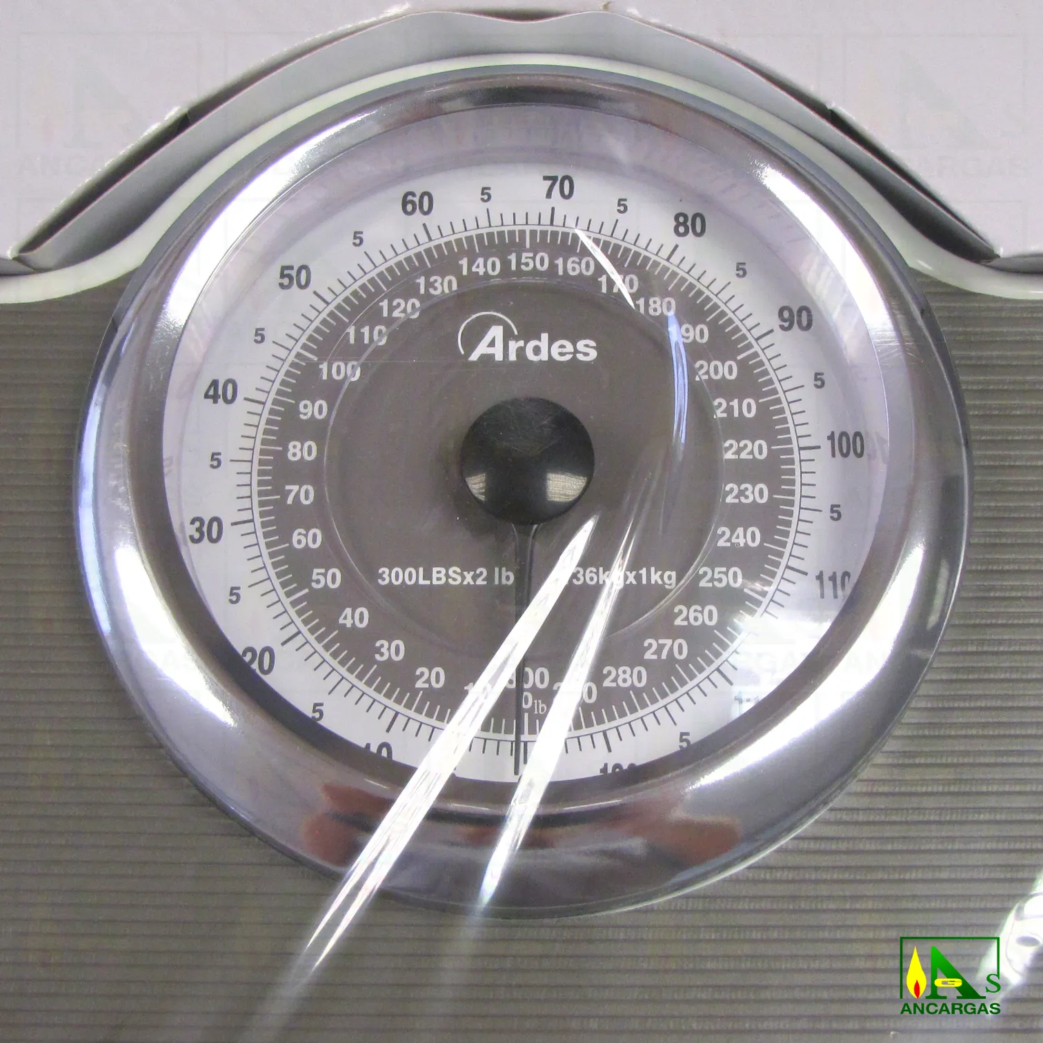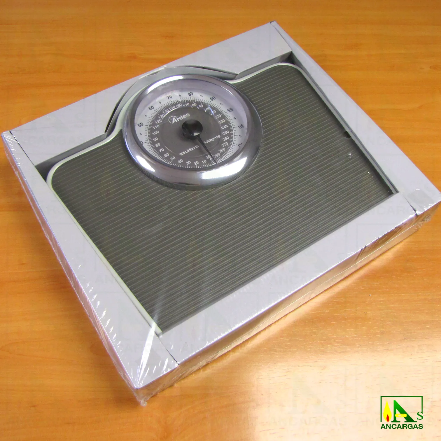Báscula de baño mecánica con dial grande, capacidad máxima 136 kg. Superficie de pesaje antideslizante.