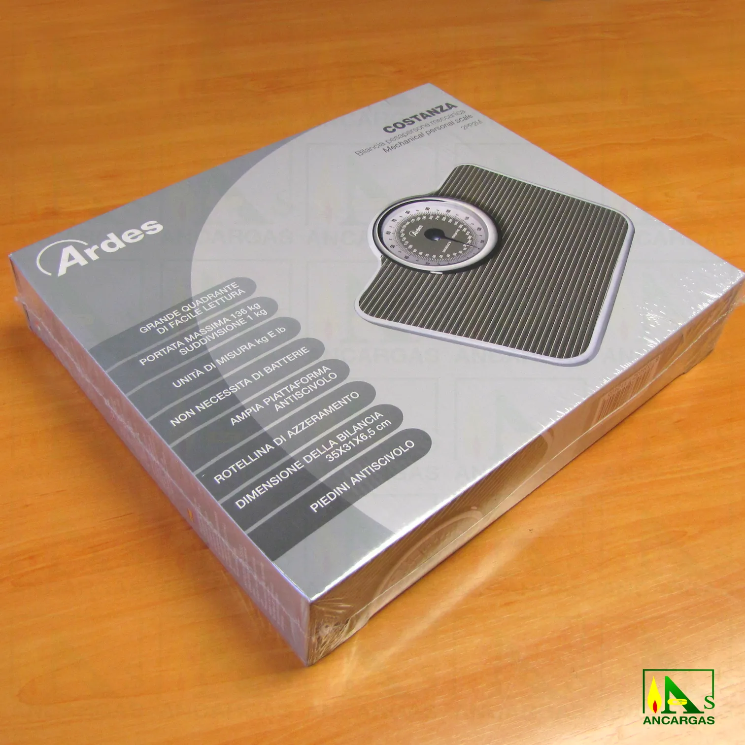 Báscula de baño mecánica antideslizante Ardes Costanza con reloj grande