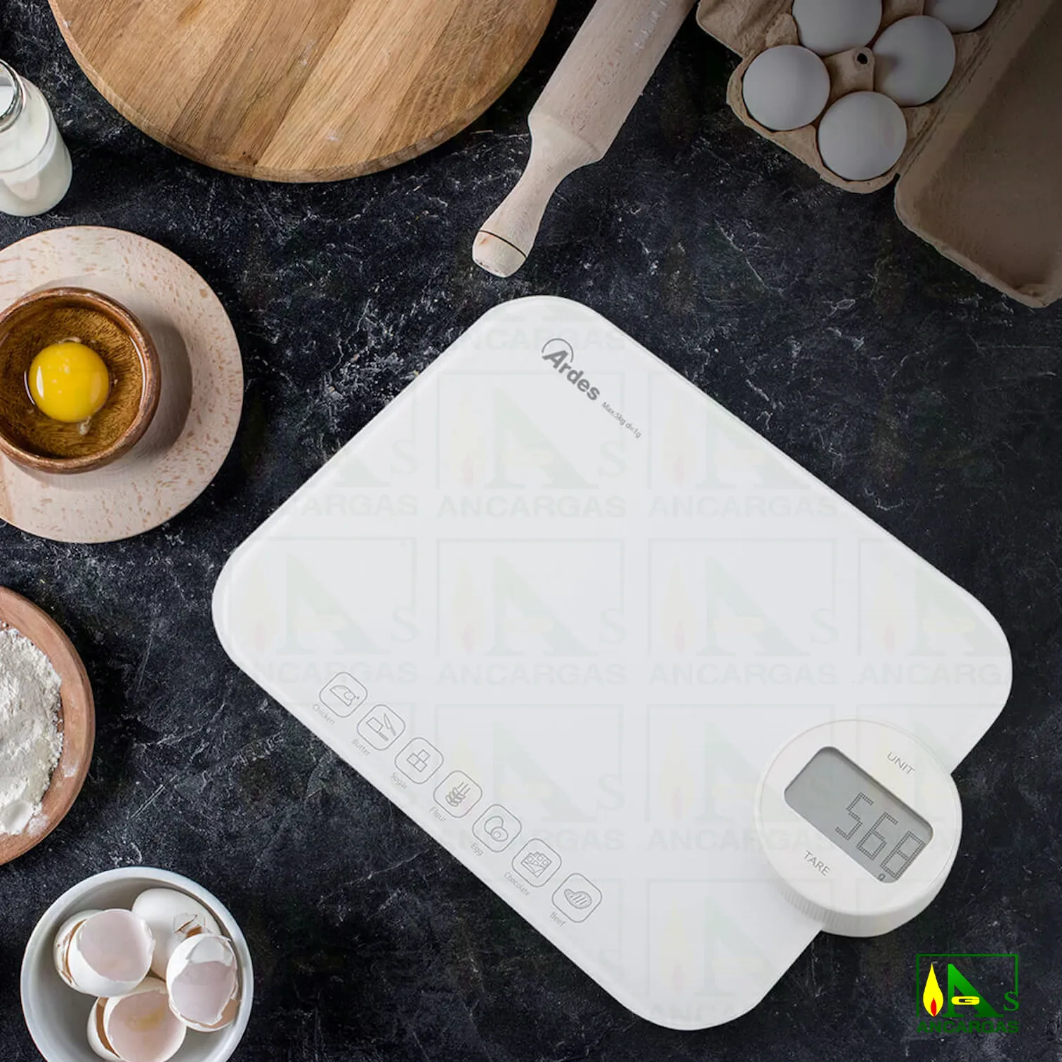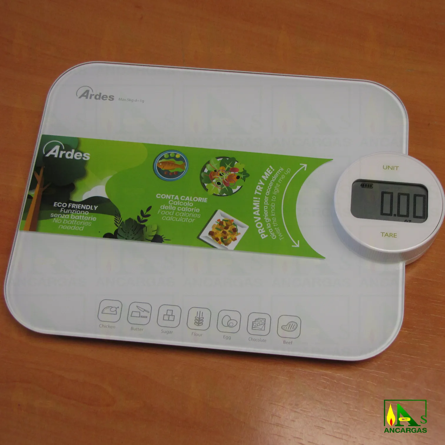 Báscula de cocina Ardes Energa sin pilas (recarga manual) con contacalorías