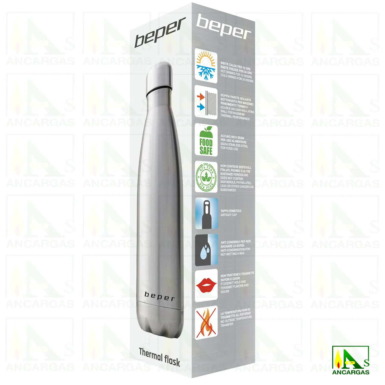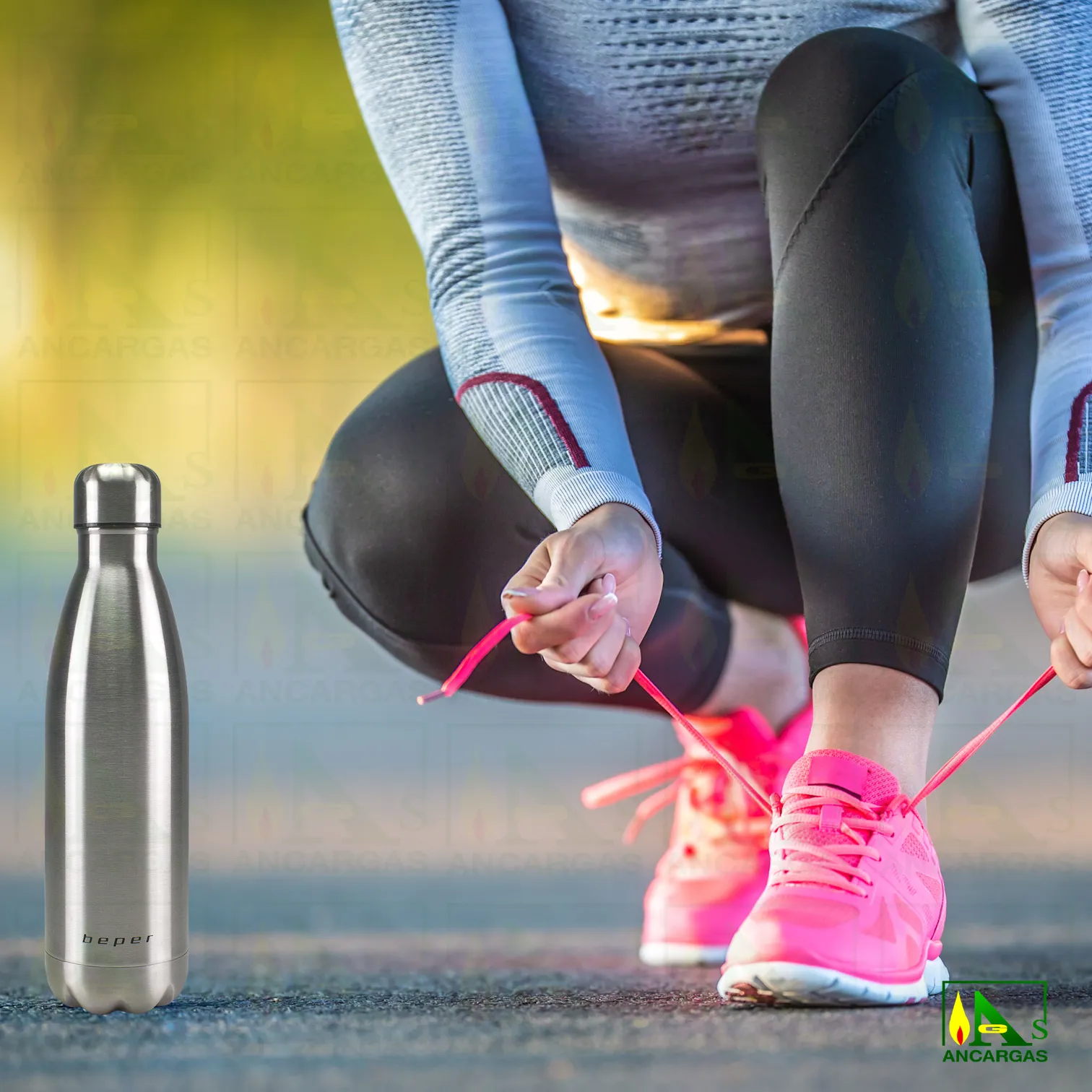 Botella térmica ligera y compacta de acero inoxidable de doble pared antiolor y anticondensación. La pared aislante al vacío dopple garantiza el máximo rendimiento térmico y mantiene la bebida caliente hasta 12 horas y fría hasta un máximo de 24 horas. Con tapa hermética para facilitar el transporte. Capacidad 500ml.