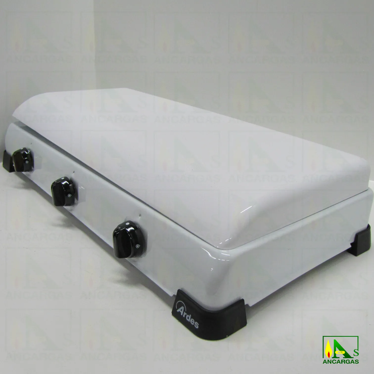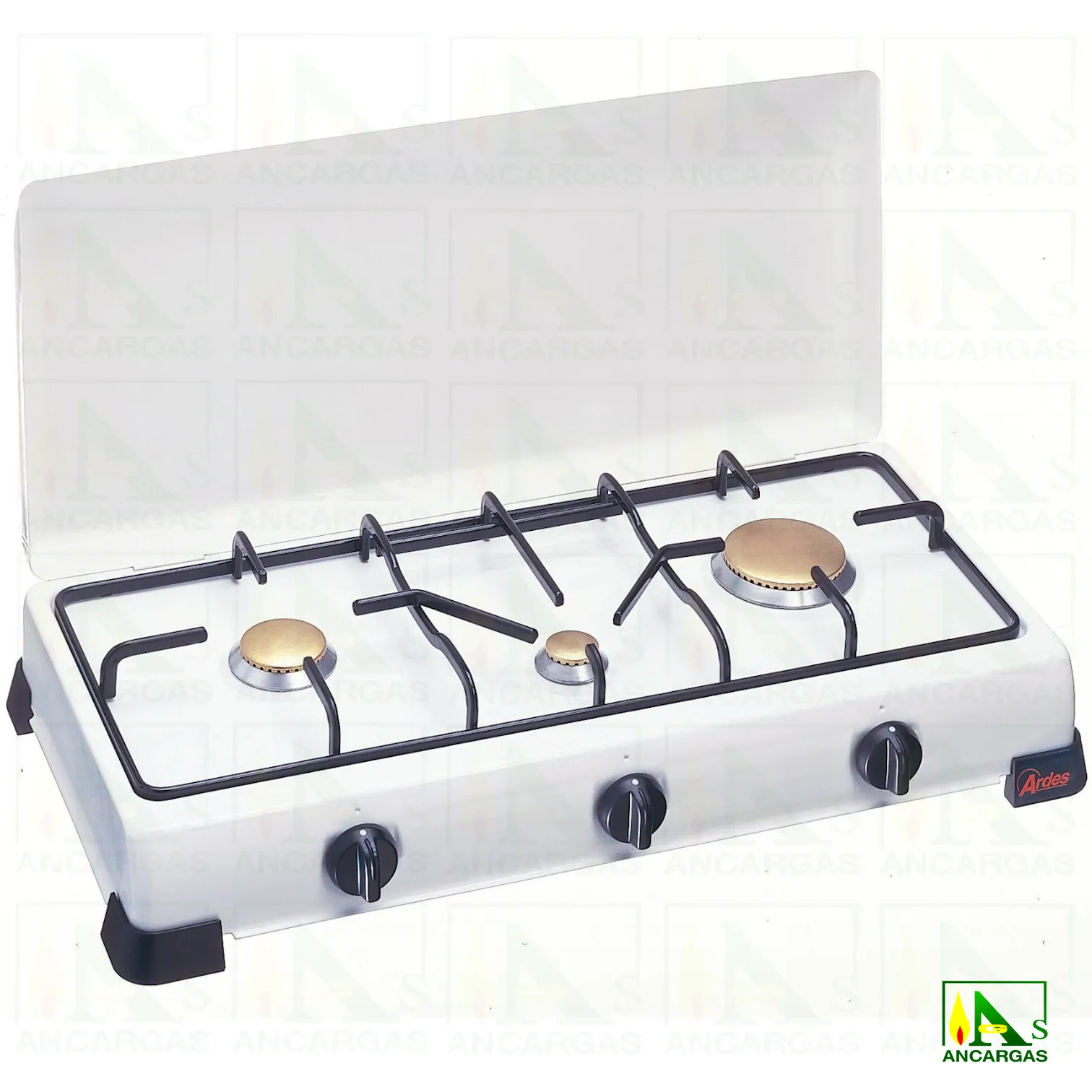 Cocina de gas Ardes Zeus de 3 fuegos epoxi blanco parrilla cromada ideal camping