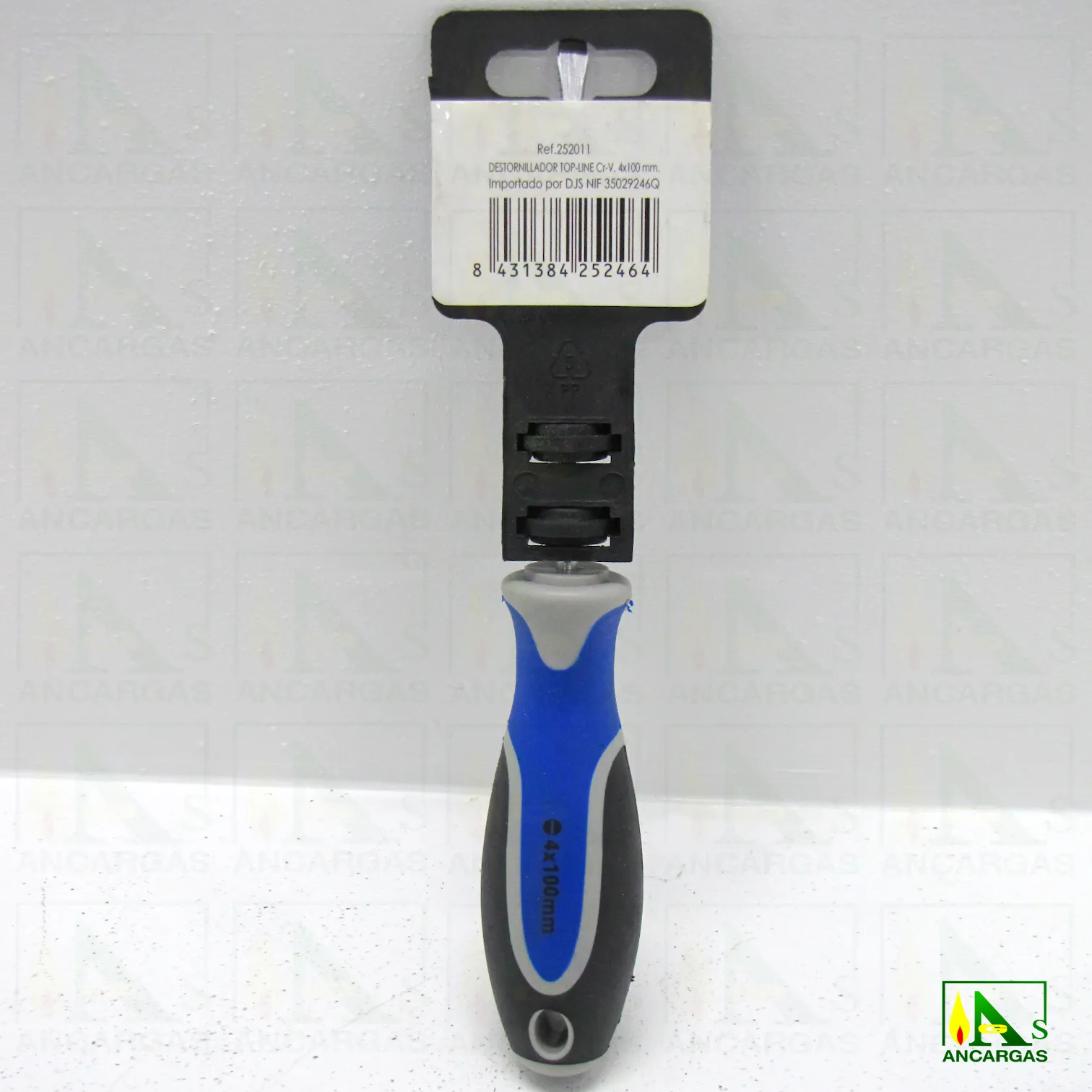 Destornillador Top Line Plano 4x100mm Varilla Cr-V. punta negra magnética.