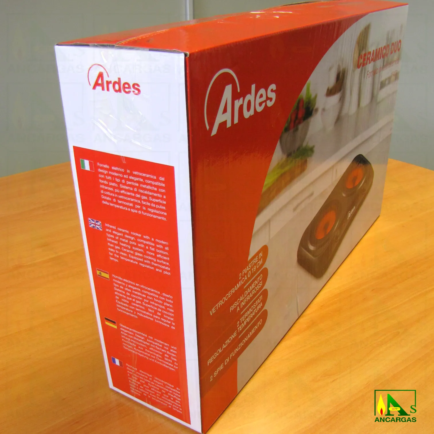 Clase I. Protección IPX0. Zonas de cocción: 2x19cm