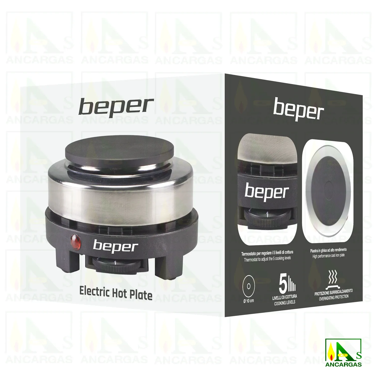 Hornillo cocina / placa eléctrica de hierro fundido y acero inox 500W 10cm Beper