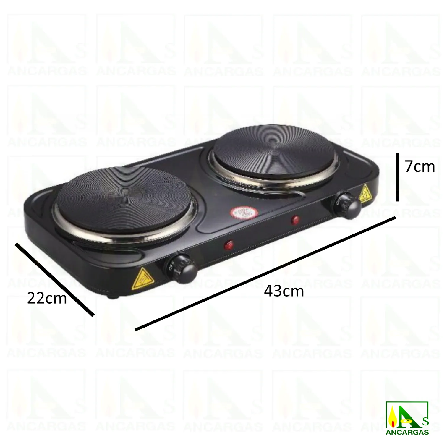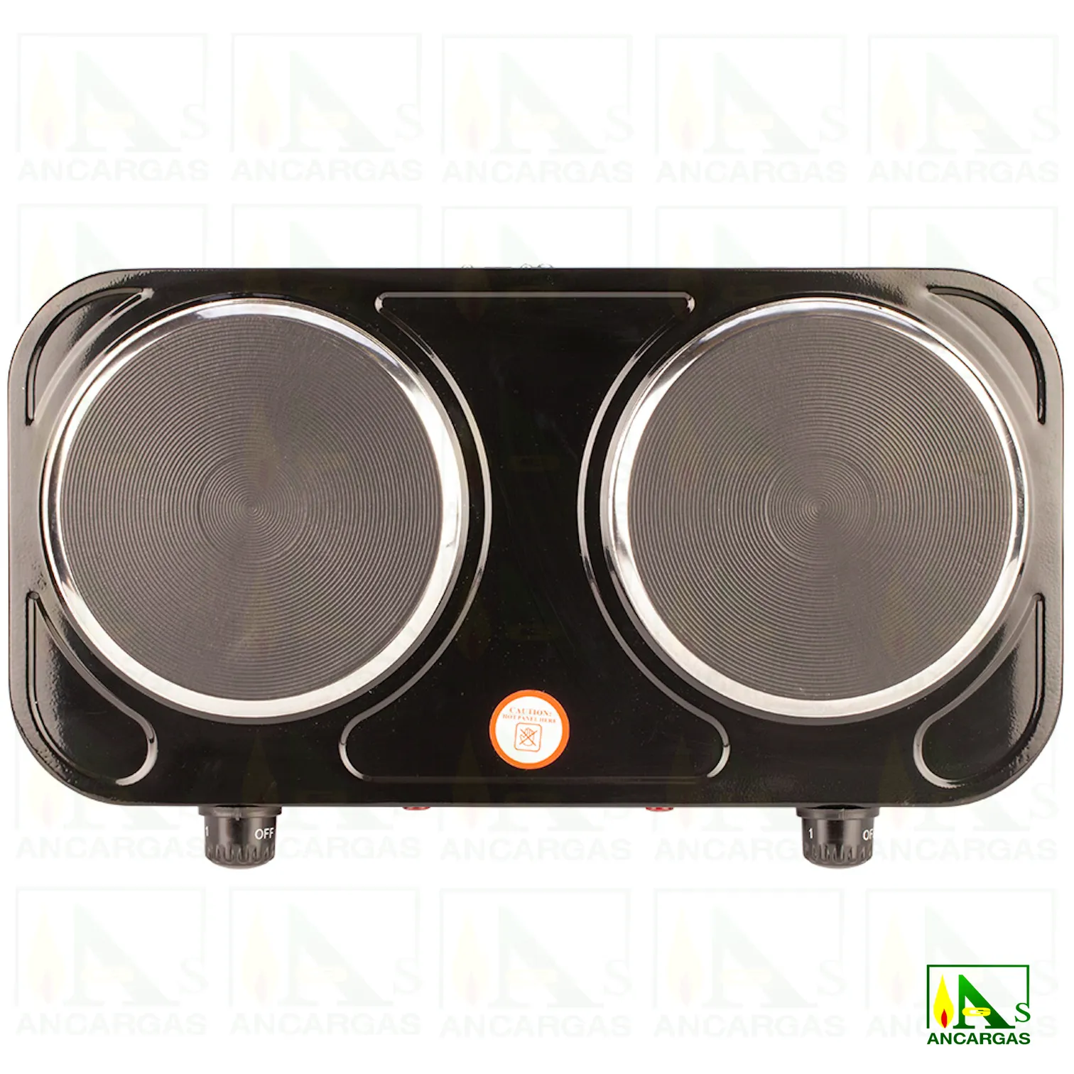 Estufa eléctrica con 2 placas de hierro fundido Ø 15,5 cm. Potencia 1000W+1000W.