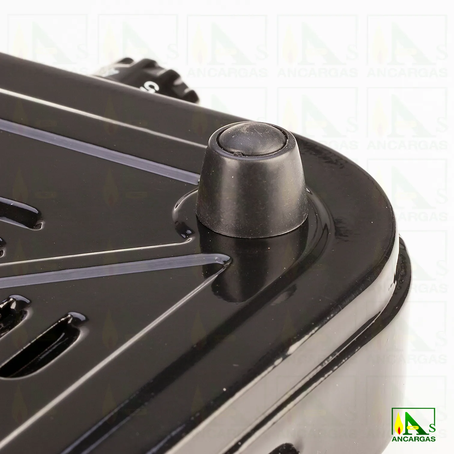 Estufa eléctrica en acero pintado con 2 termostatos para regulación de temperatura. Las dos placas de hierro fundido de Ø 15,5 cm retienen el calor durante un largo periodo con la estufa apagada, lo que permite un importante ahorro energético. Luces de operación. Pies antideslizantes. Potencia: 1000W + 1000W.