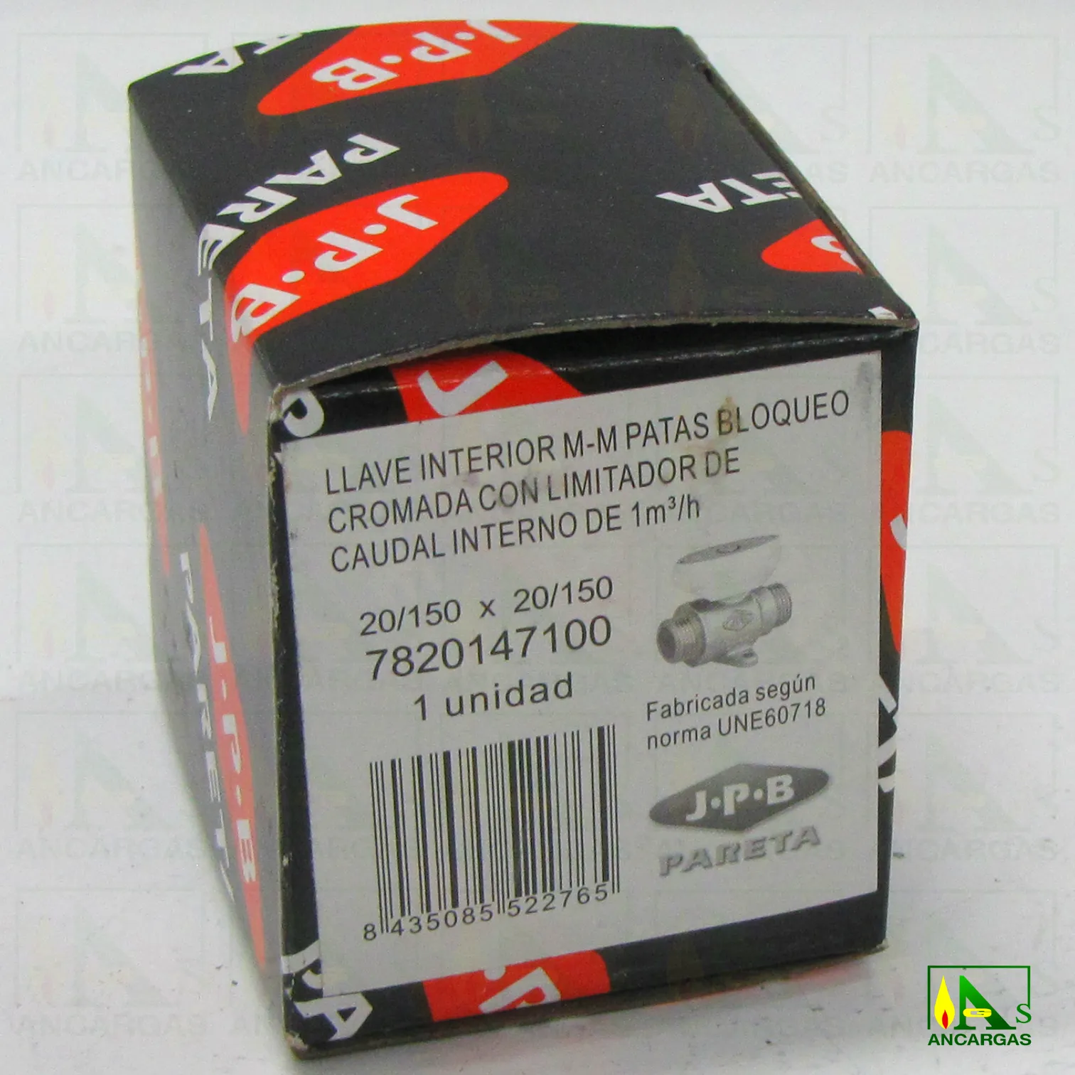 Llave con limitador de caudal para instalaciones interiores según la norma UNE 60718 con patas, con sistema de bloqueo y precintable.