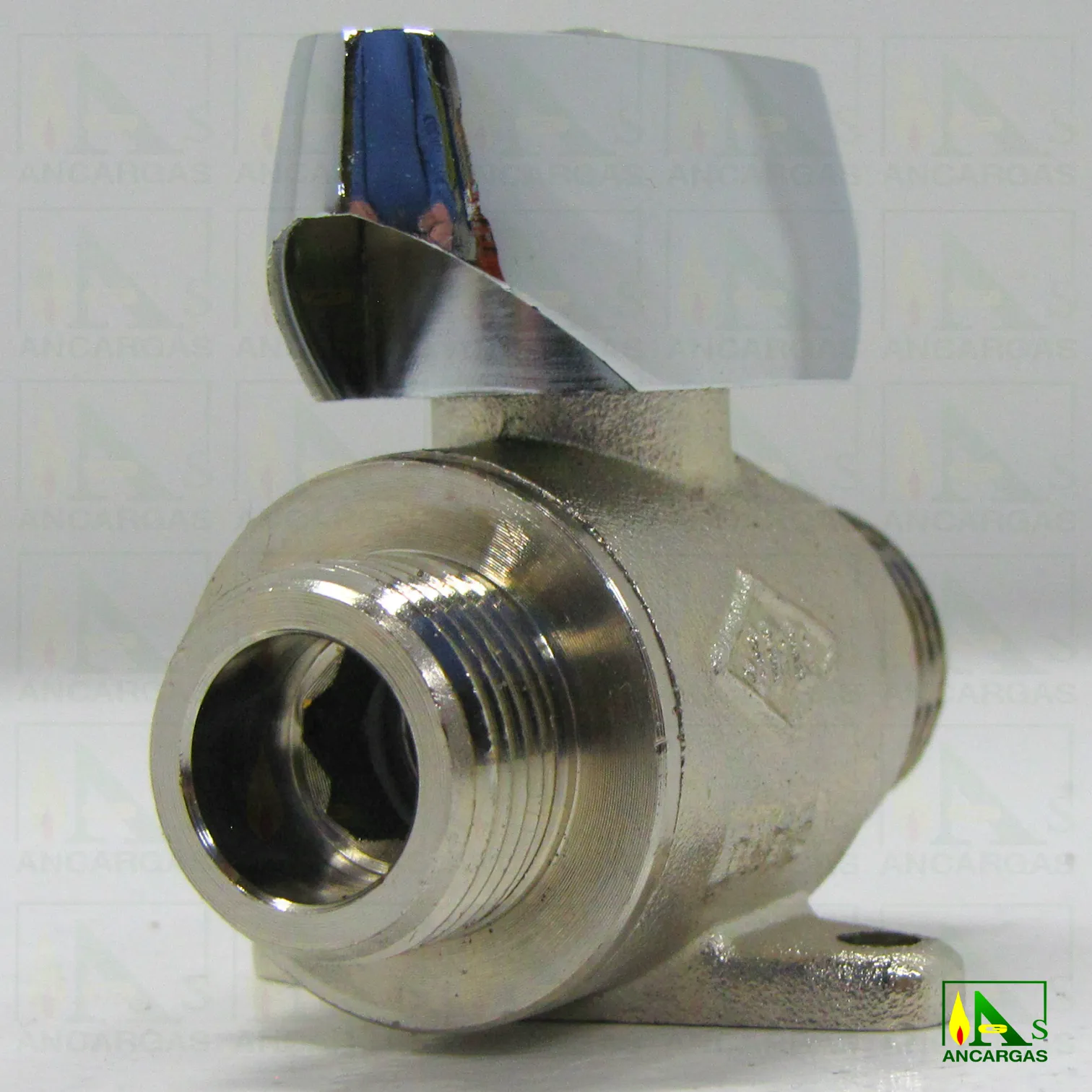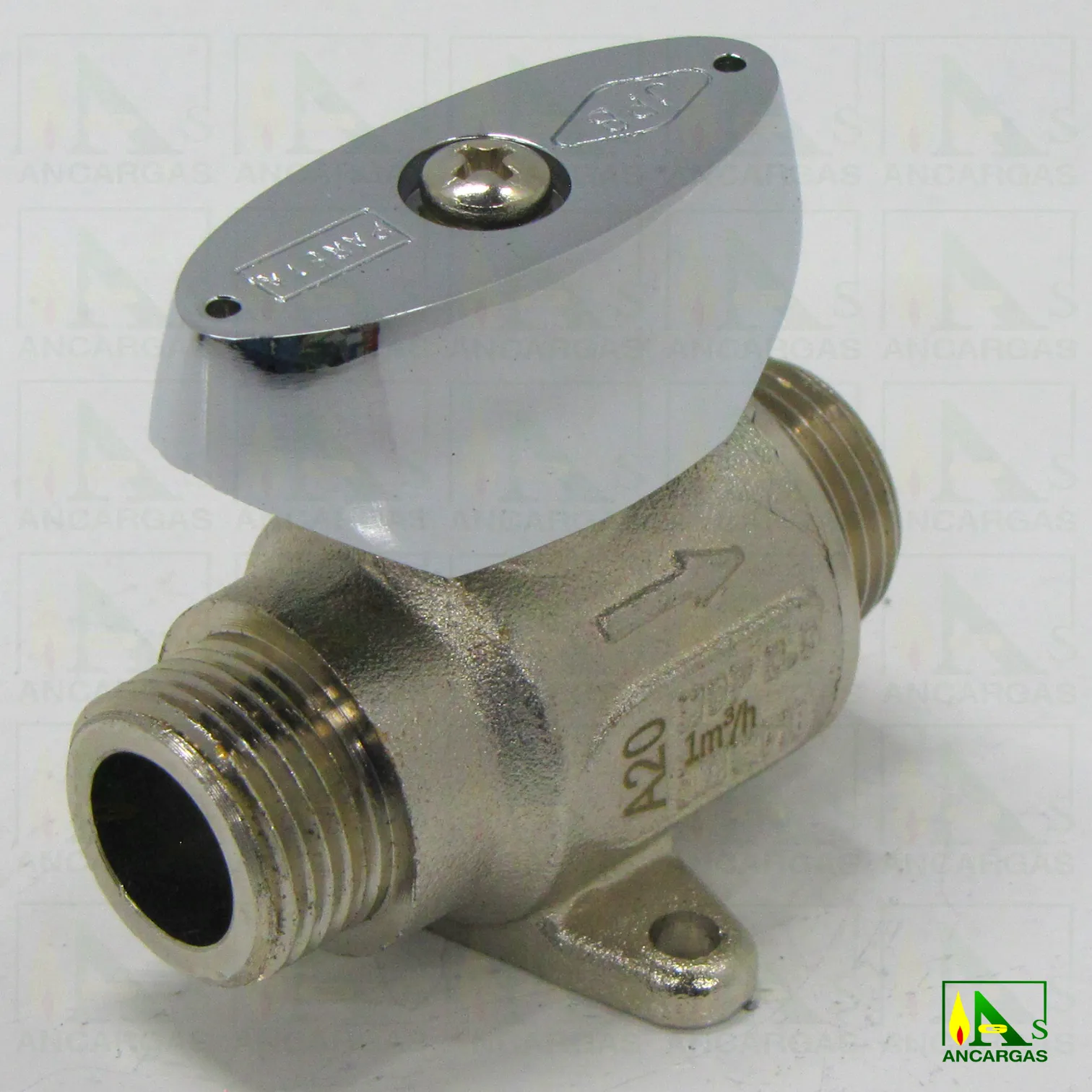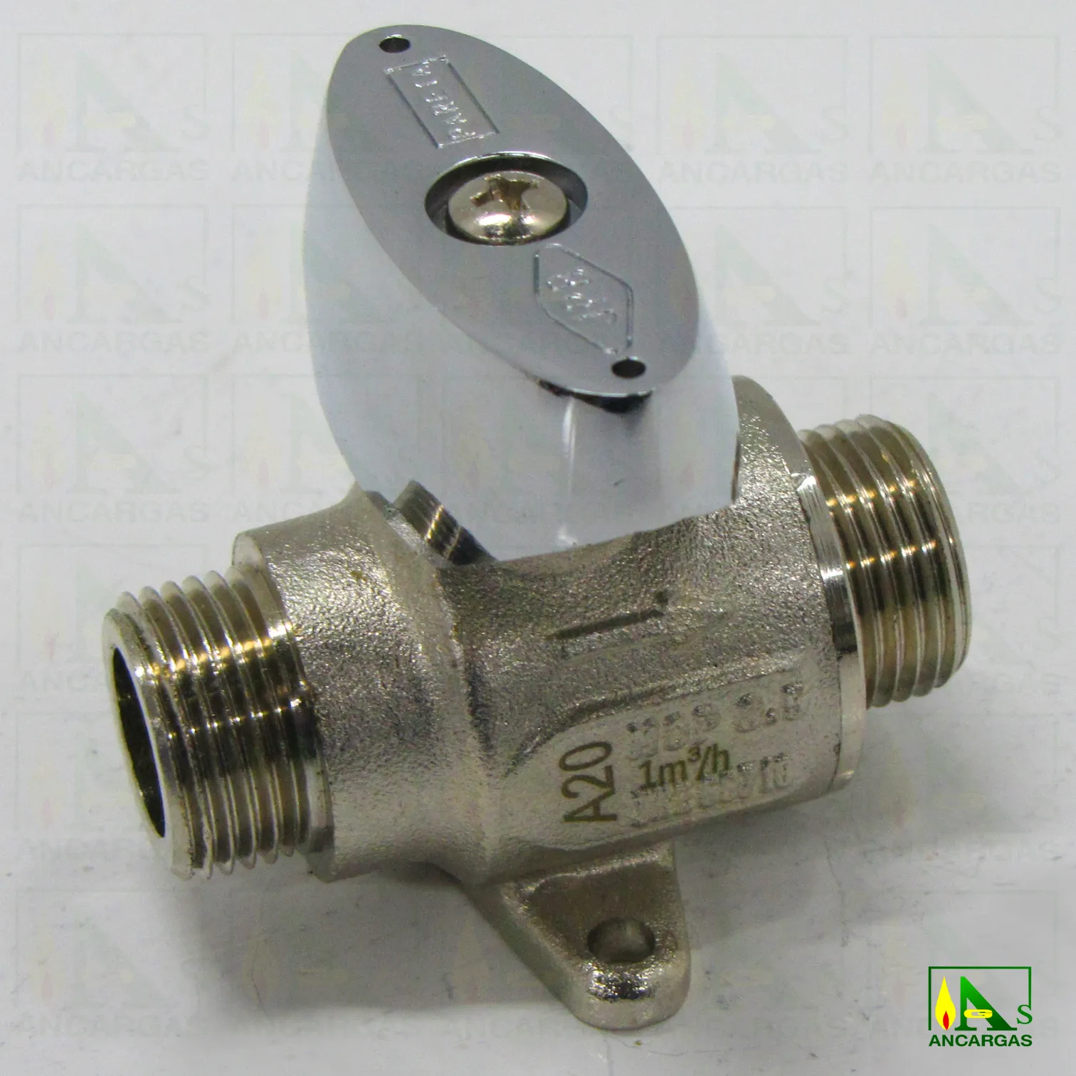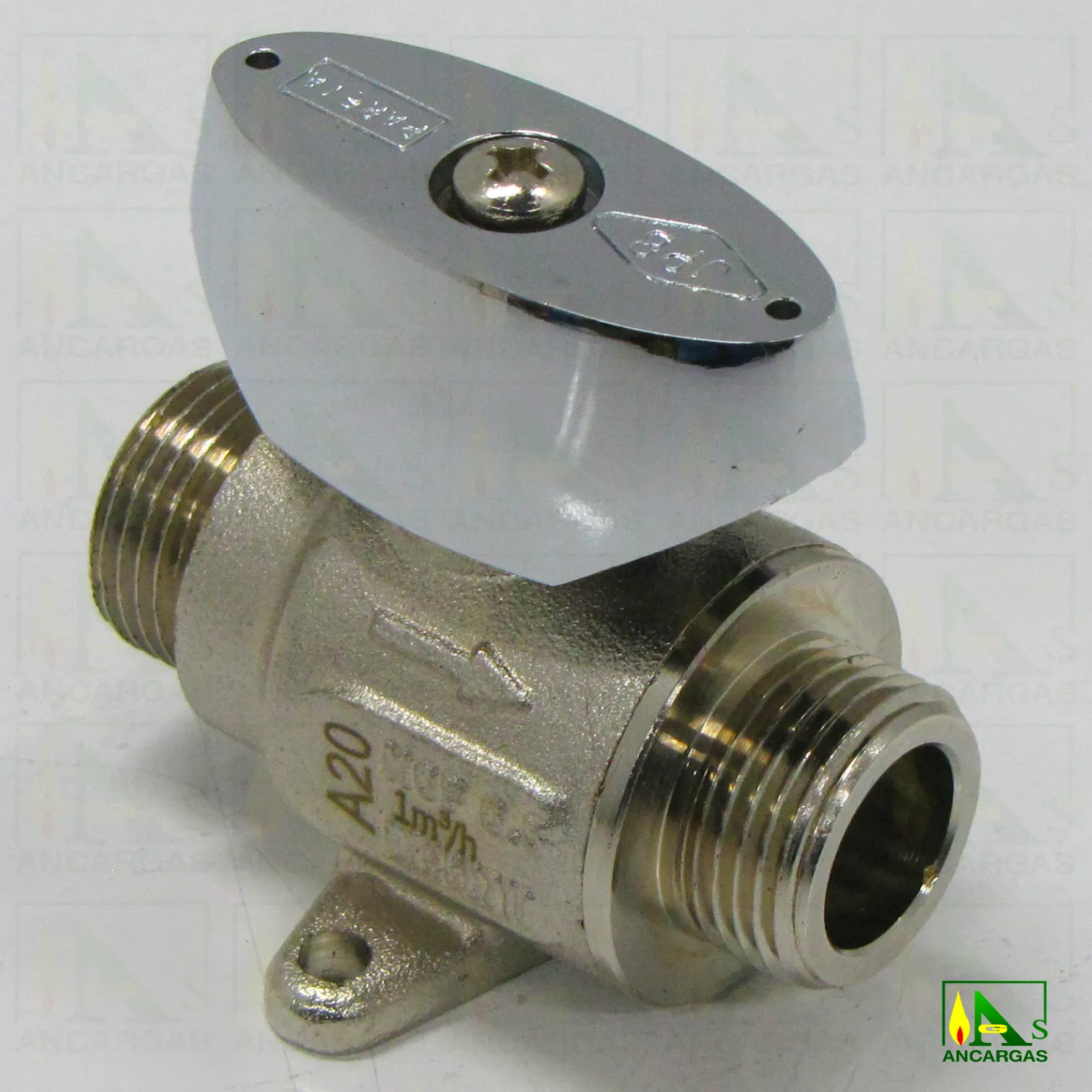 Llave esfera cromada con limitador de caudal interno MxM 20×150 para GLP 37mbar