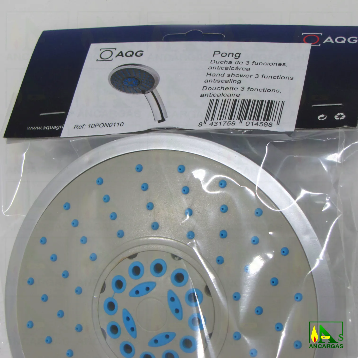 Mango de ducha anticalcárea Modelo PONG. Ducha de 3 funciones, anticalcárea. 155 mm