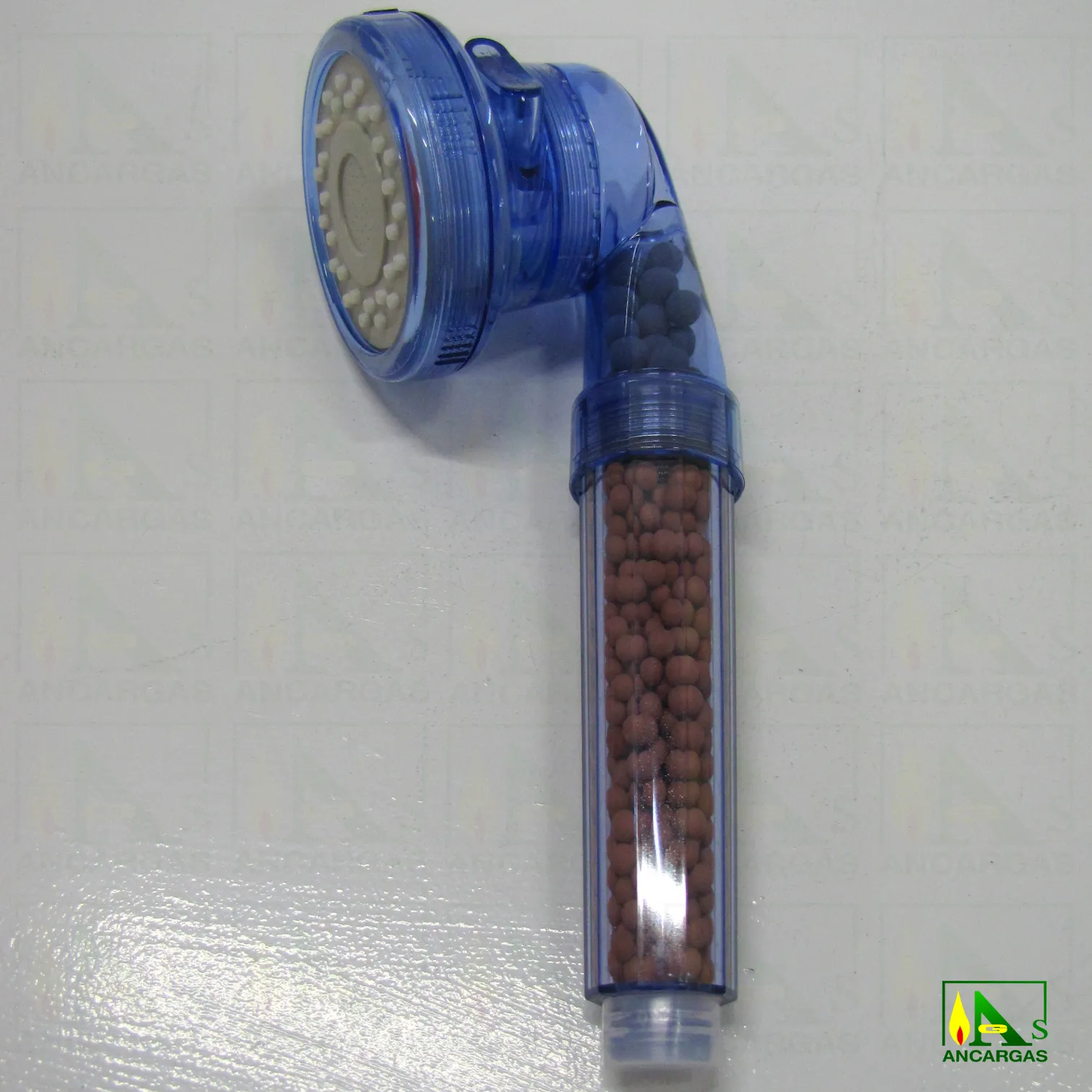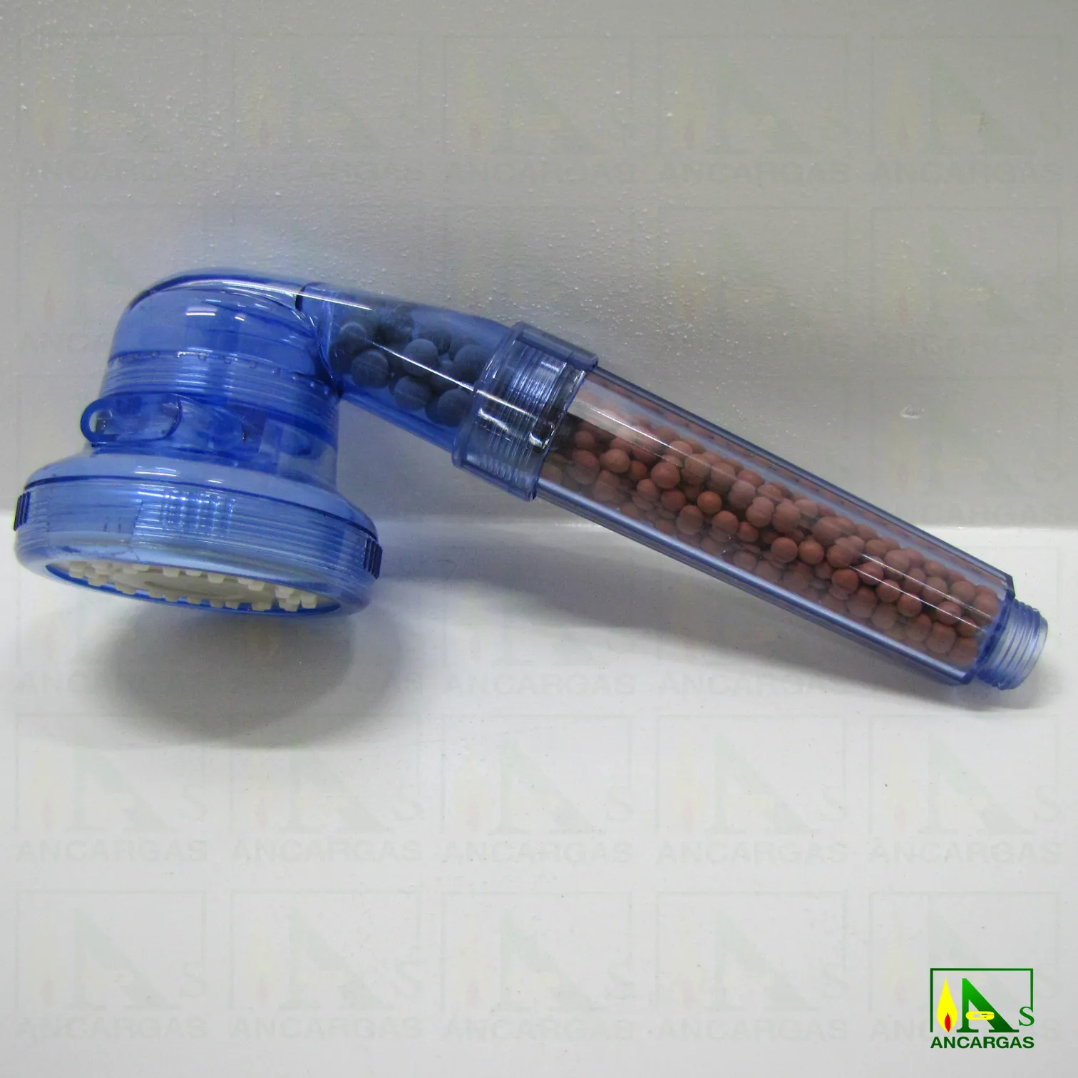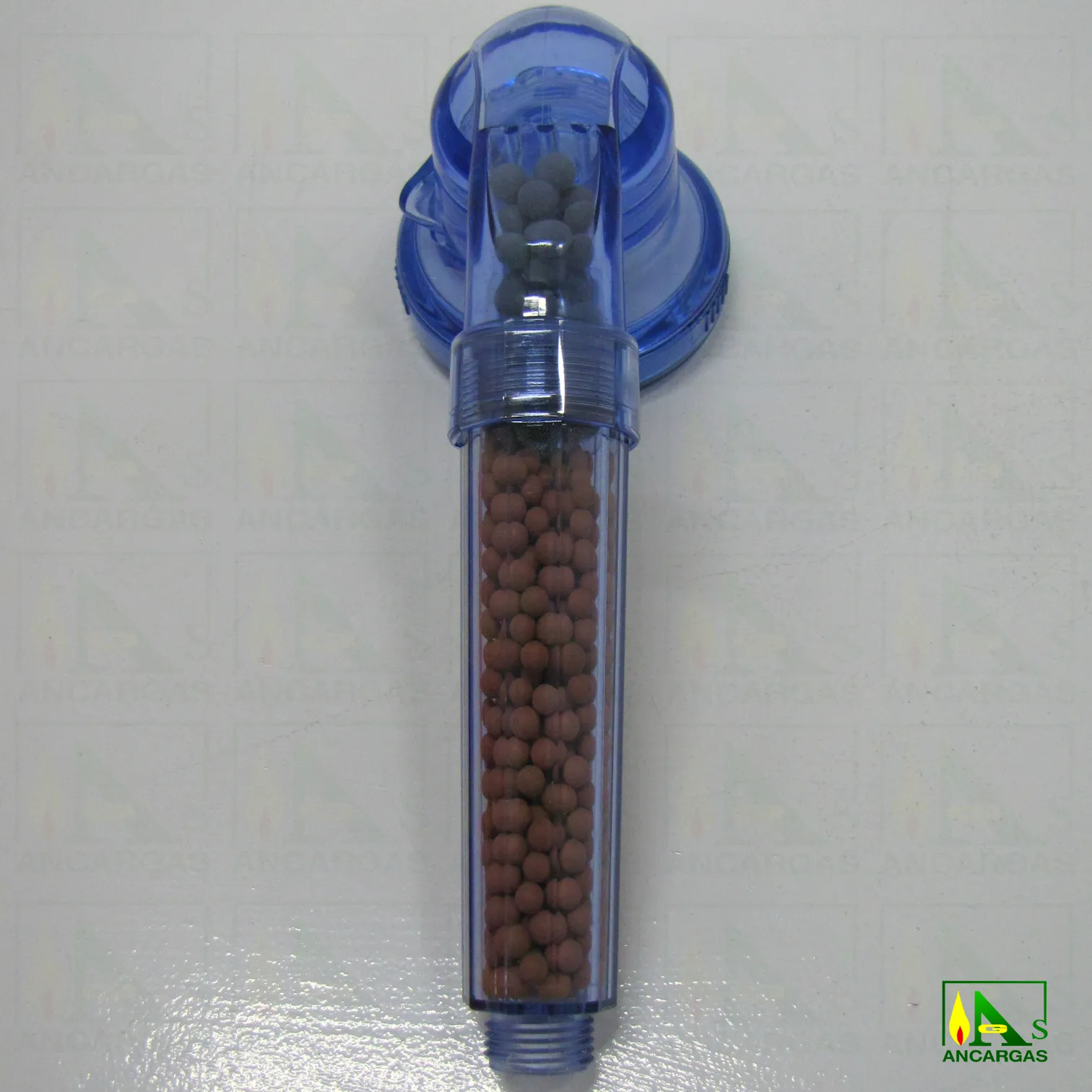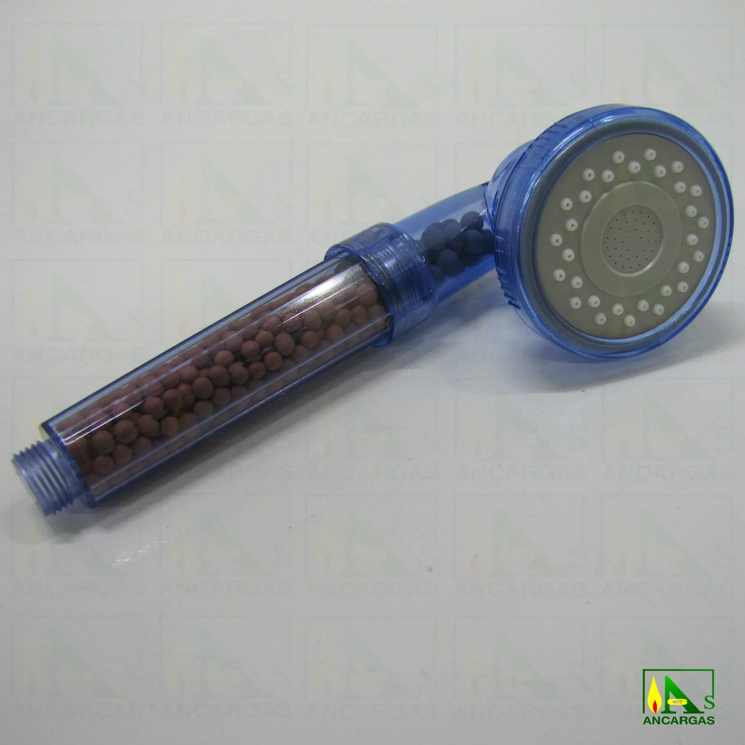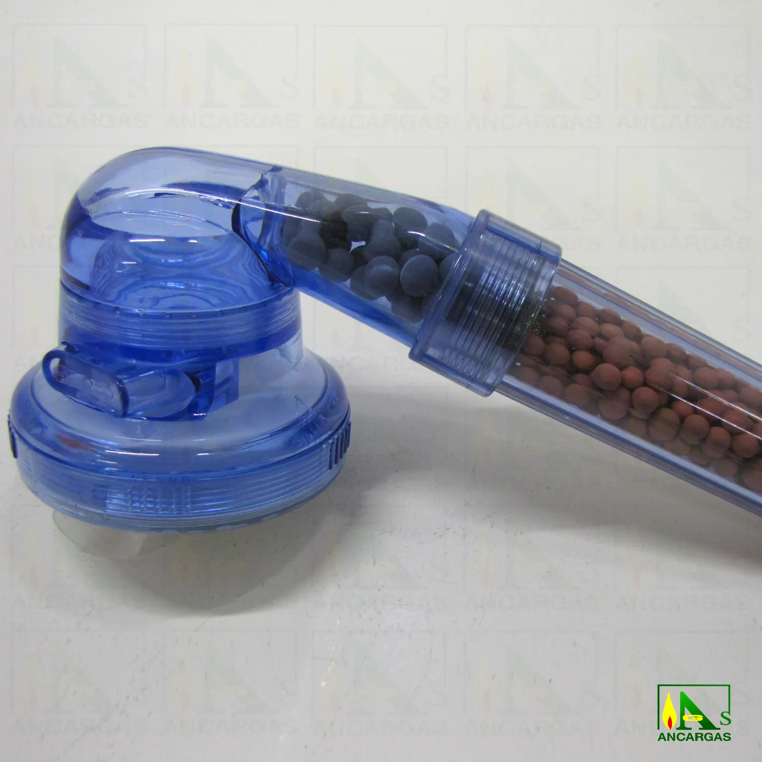 Mango de ducha Zen de 3 posiciones en policarbonato. Ducha de mano de alta presión con cuerpo de policarbonato. El cabezal es extraible y lavable. Piedra natural, reduce cal, metales duros y bacterias del agua para un efecto zen. En caja.