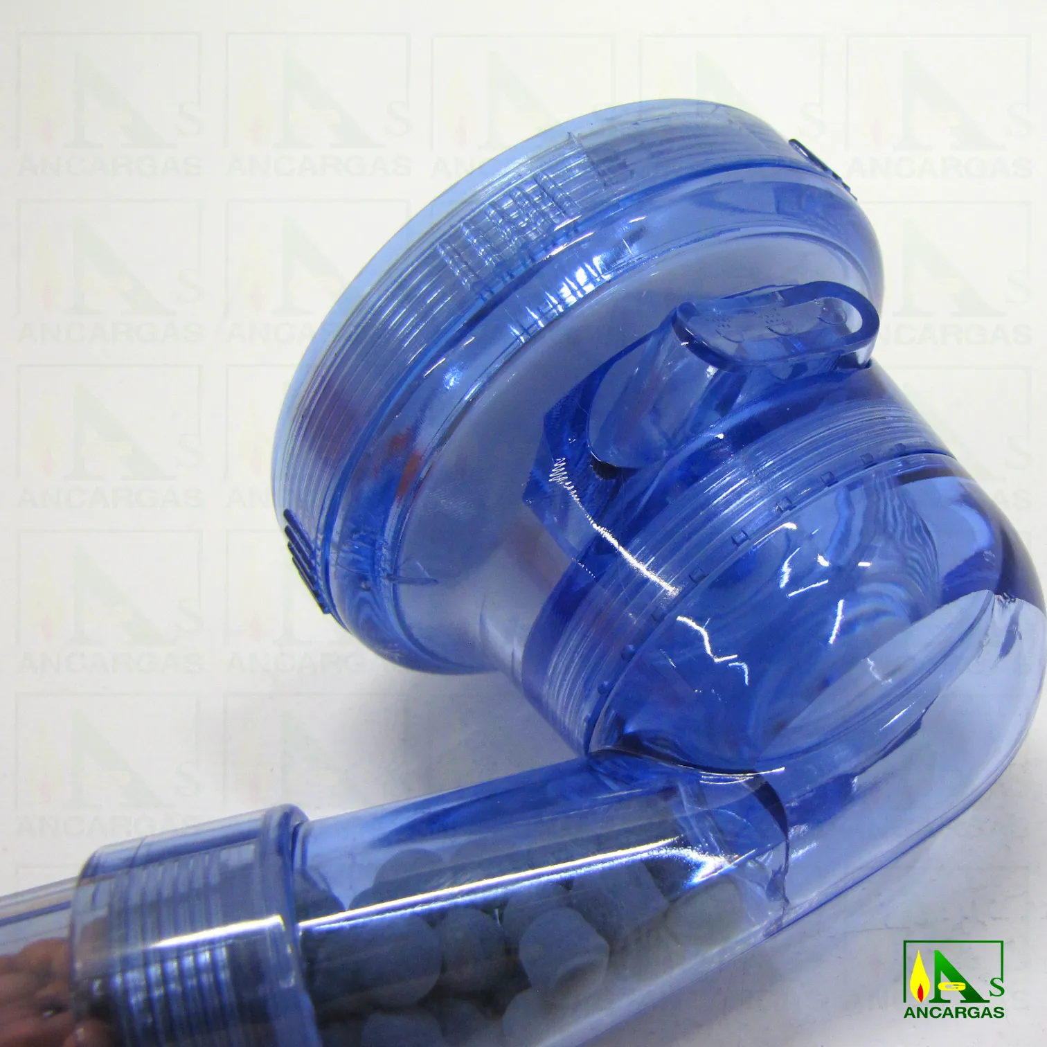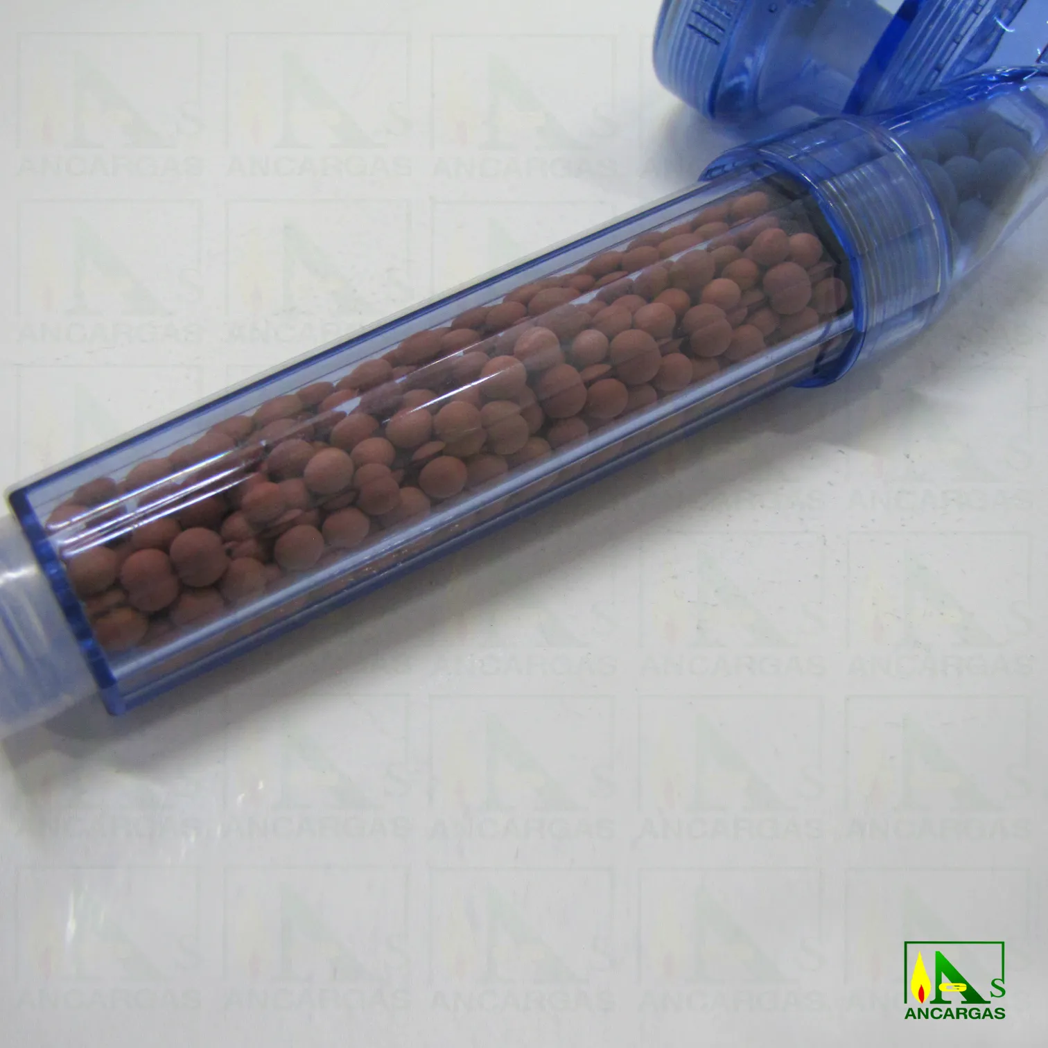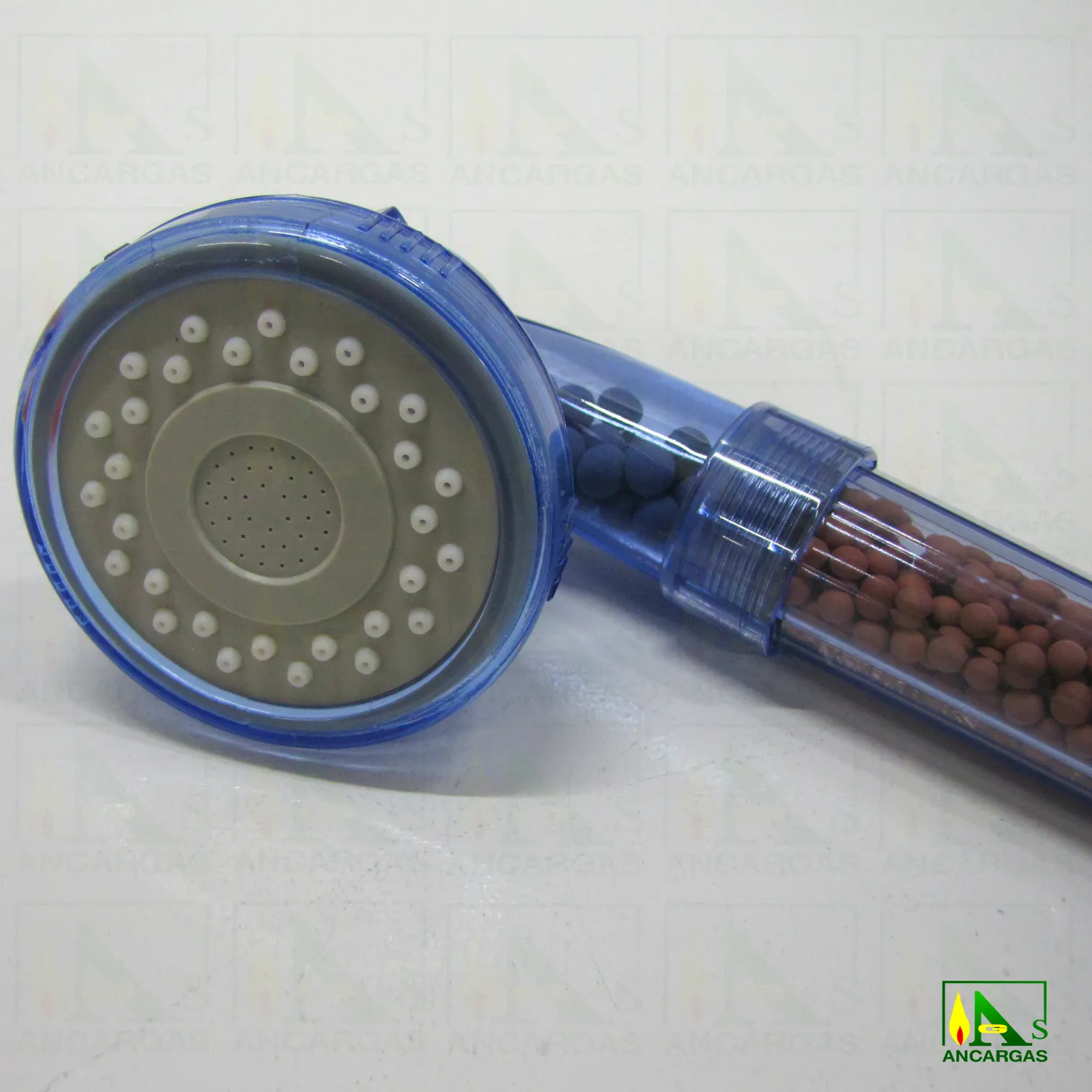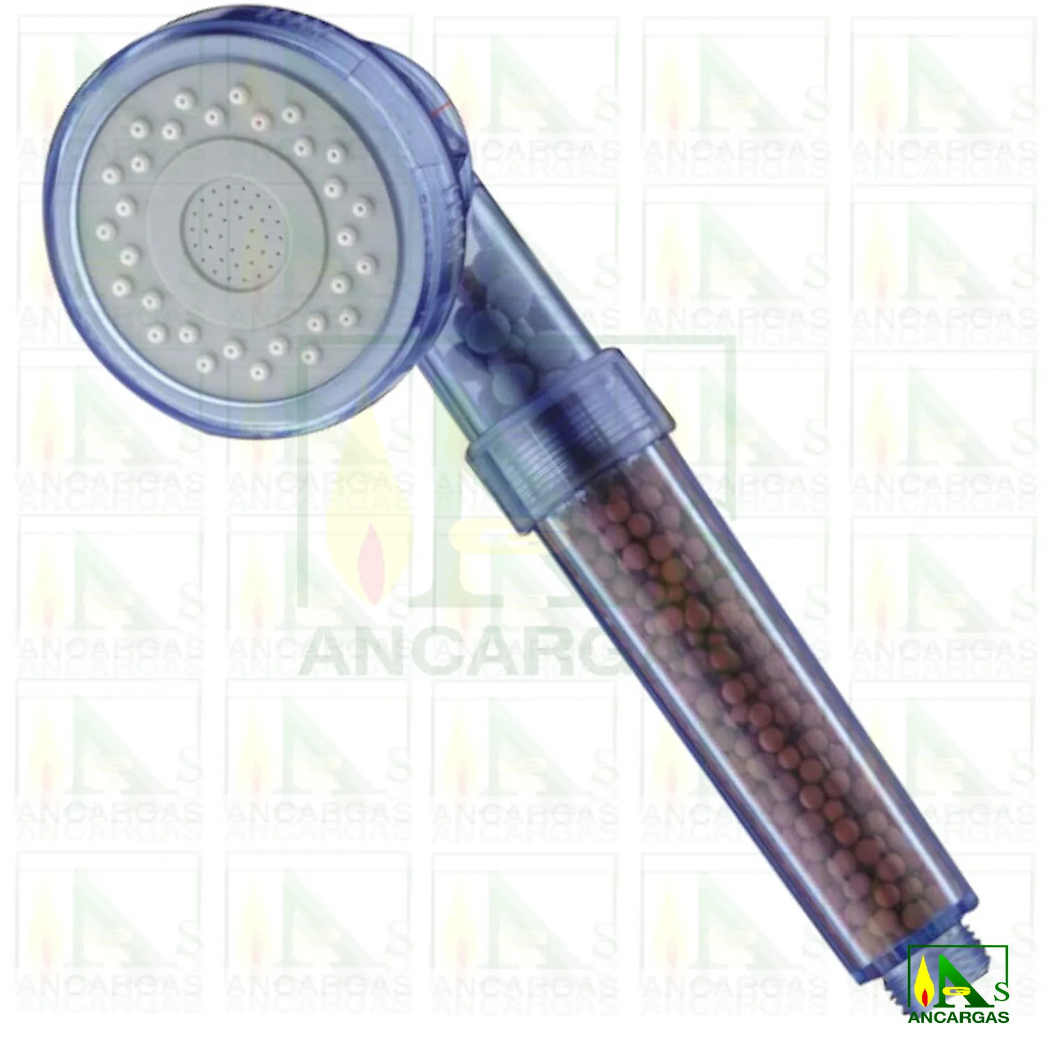Mango de ducha Zen de 3 posiciones en policarbonato. Ducha de mano de alta presión con cuerpo de policarbonato. El cabezal es extraible y lavable. Piedra natural, reduce cal, metales duros y bacterias del agua para un efecto zen. En caja.