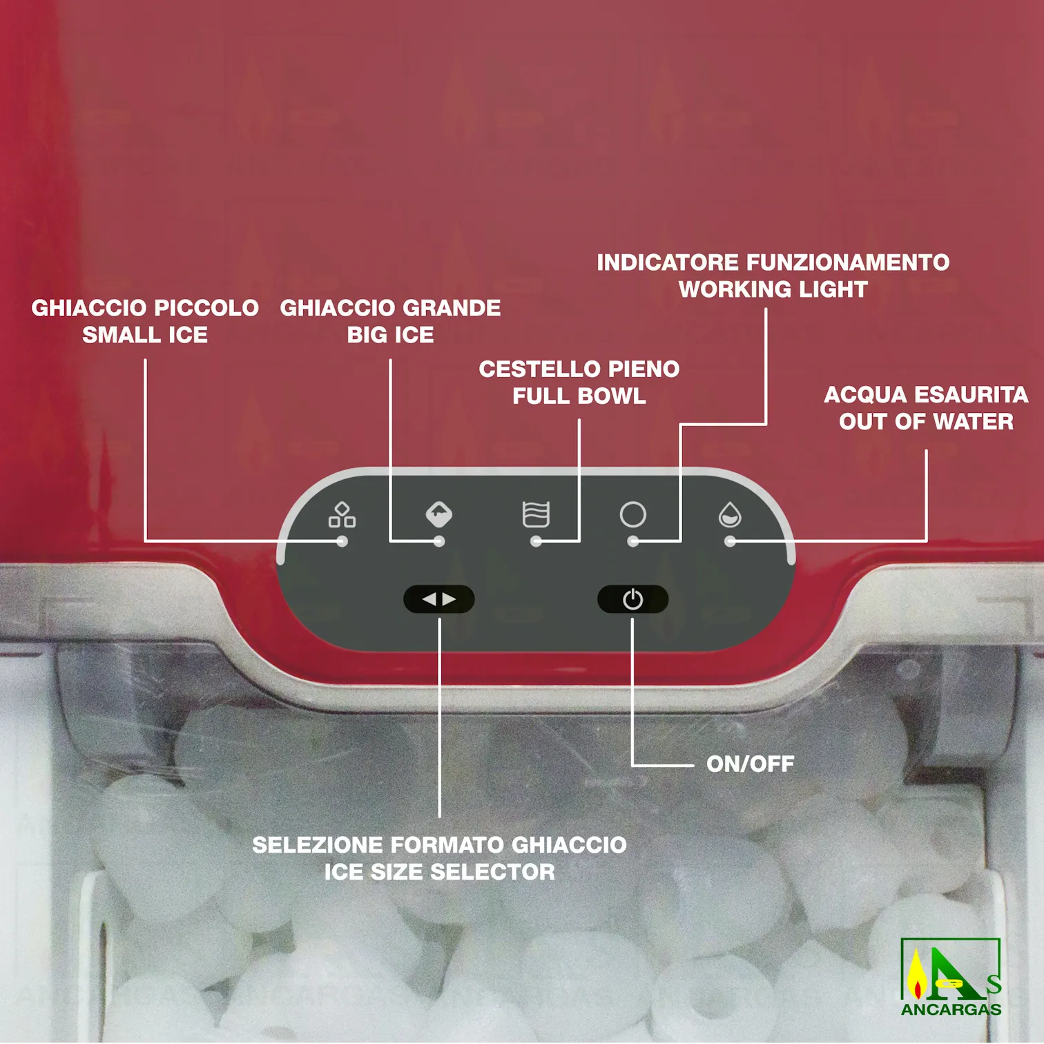 Práctica máquina para producir cubitos de hielo de forma rápida y sencilla. Produce hasta 12 kg de hielo en 24 horas, en dos tamaños diferentes seleccionables. En un ciclo de sólo unos minutos, se fabrican 9 cubitos que se almacenan en la cubitera para tener hielo siempre listo. Equipada con un depósito de agua de gran capacidad y dos luces para señalar la cesta llena y con poca agua. El producto es fácil e intuitivo de usar y de limpiar, también gracias a la función de autolimpieza.