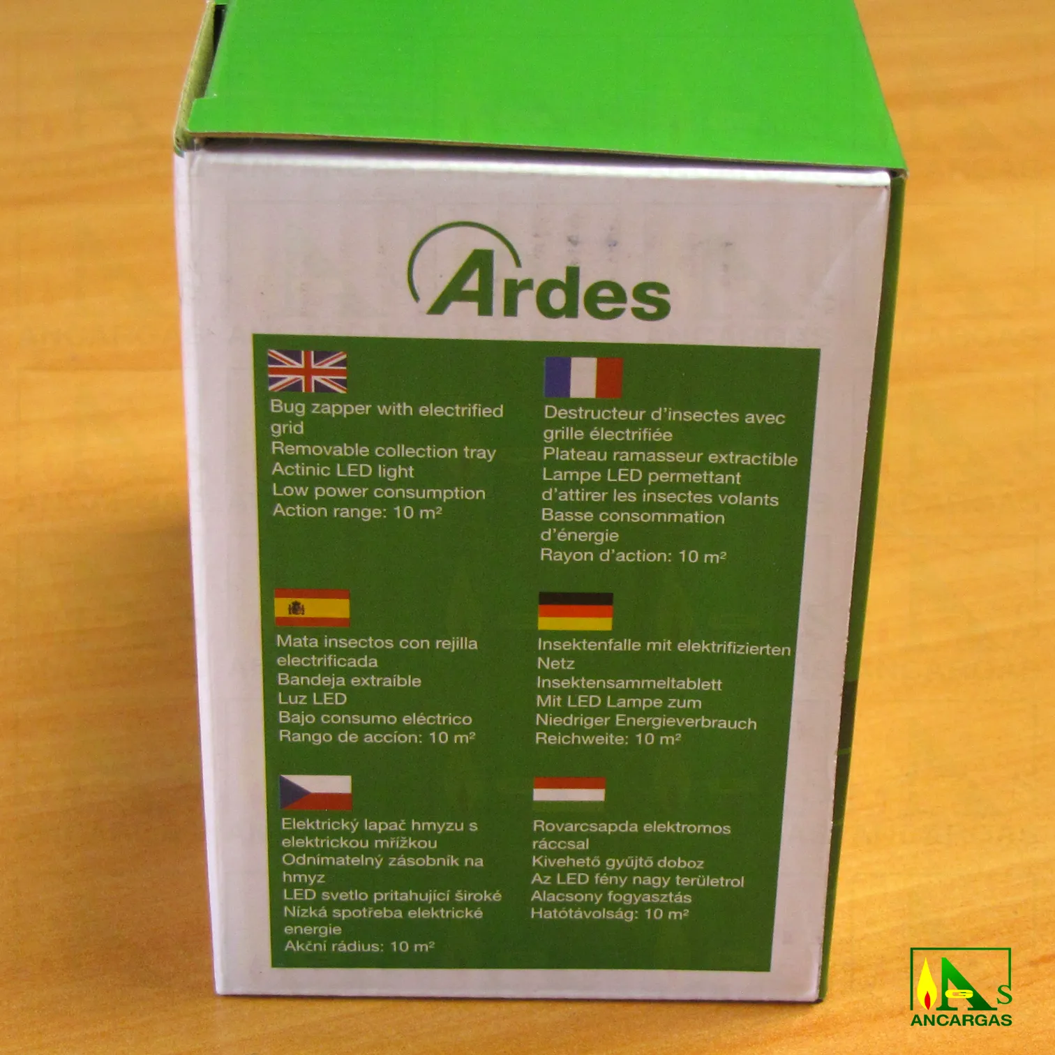 Matamoscas de descarga eléctrica. Lámpara actínica LED de 2W. Bandeja de recogida de insectos extraíble. Rango de acción: 10m². Bajo consumo energético.