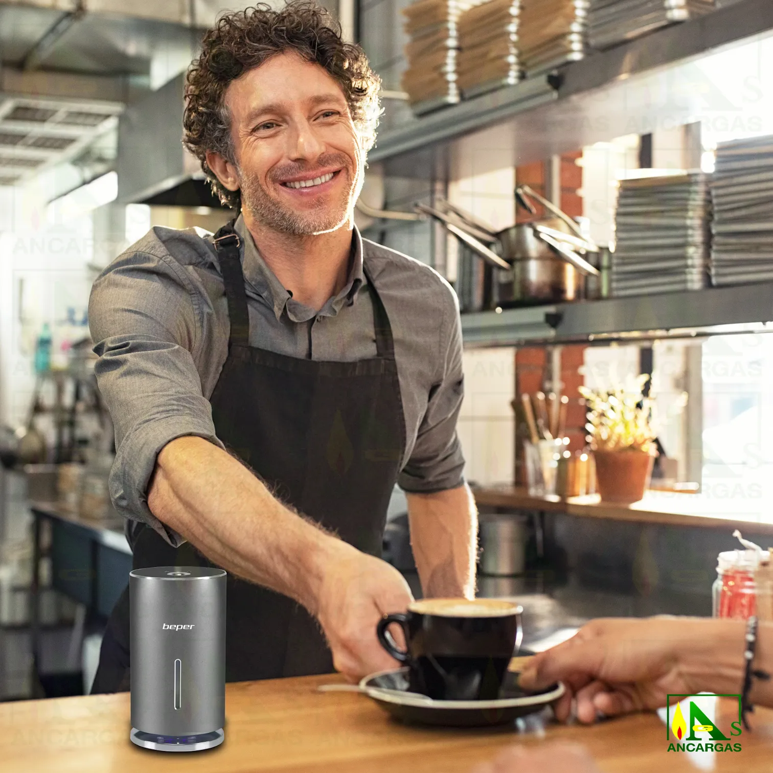Nebulizador desinfectante en aerosol automático ideal para desinfectar eficazmente las manos donde no se puede usar agua y jabón Funcionamiento sin contacto: simplemente acercando las manos u objetos a desinfectar al sensor de infrarrojos, será posible activar la dispensación de la solución desinfectante. Se puede utilizar con soluciones líquidas con un contenido de alcohol superior al 75%, para una desinfección rápida y eficaz. Batería de litio recargable mediante cable USB incluido, tanque de 135 ml de capacidad. Diseño elegante y compacto, apto para todos los entornos.