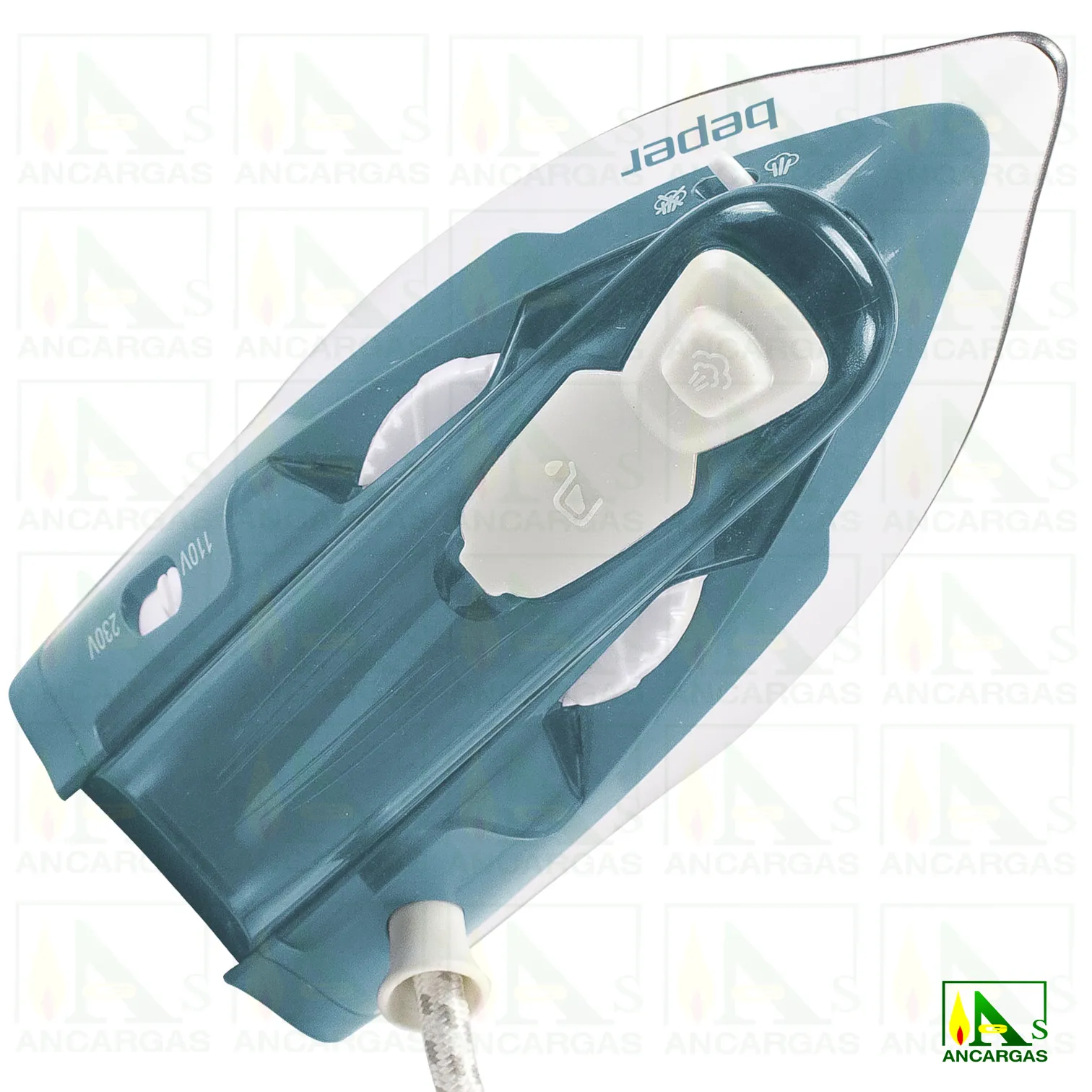 Plancha ligera y compacta con modos de planchado en seco y a vapor. Depósito de 80ml de capacidad y suela antiadherente. Plancha con temperatura regulable con el práctico pomo según el tejido. Golpe de vapor de 0,3 g. Ideal para viajar gracias a la doble tensión y al asa plegable para un volumen mínimo.