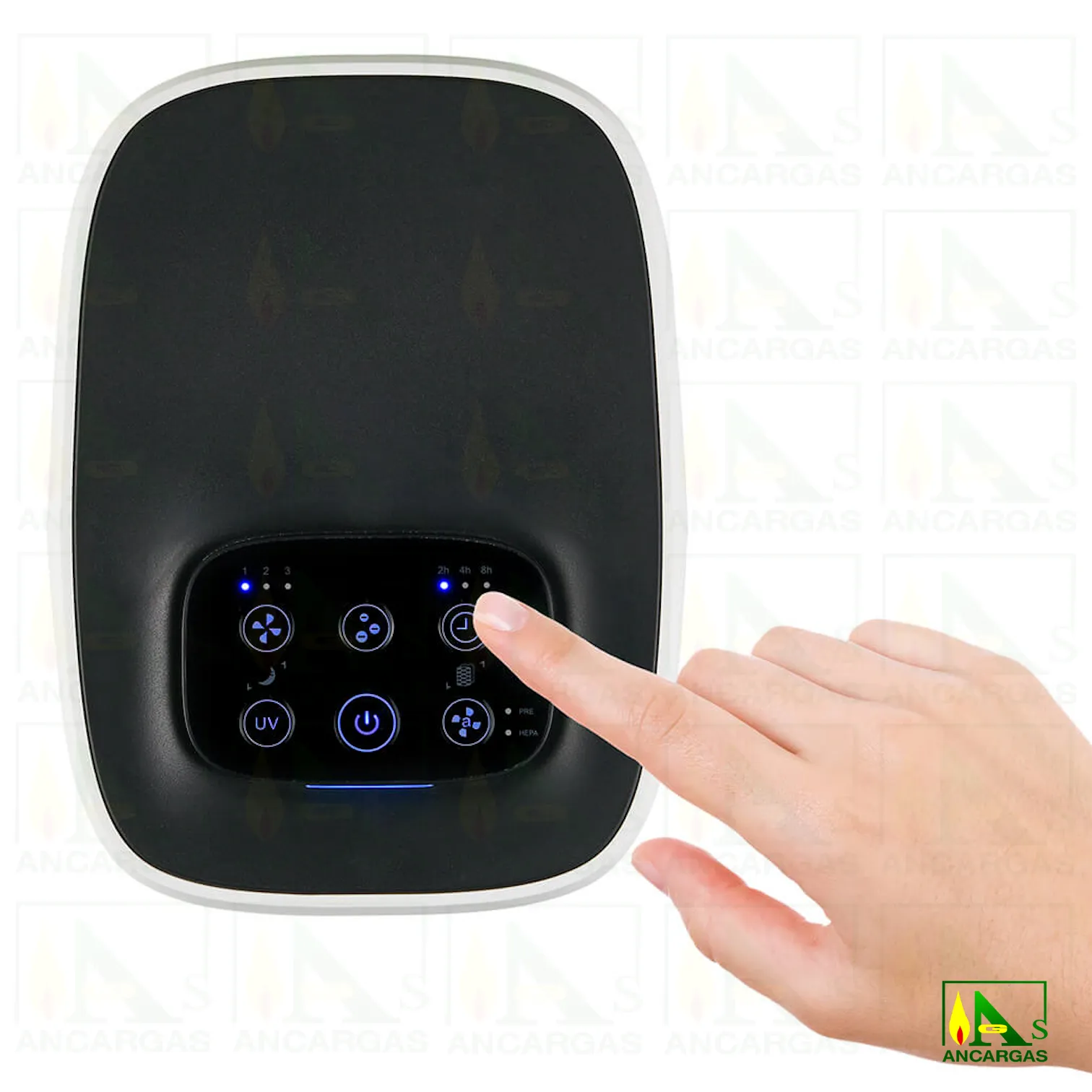 Purificador de aire Pyour. CADR 200m³/h apto para espacio de hasta 35m². Triple filtro HEPA 13.