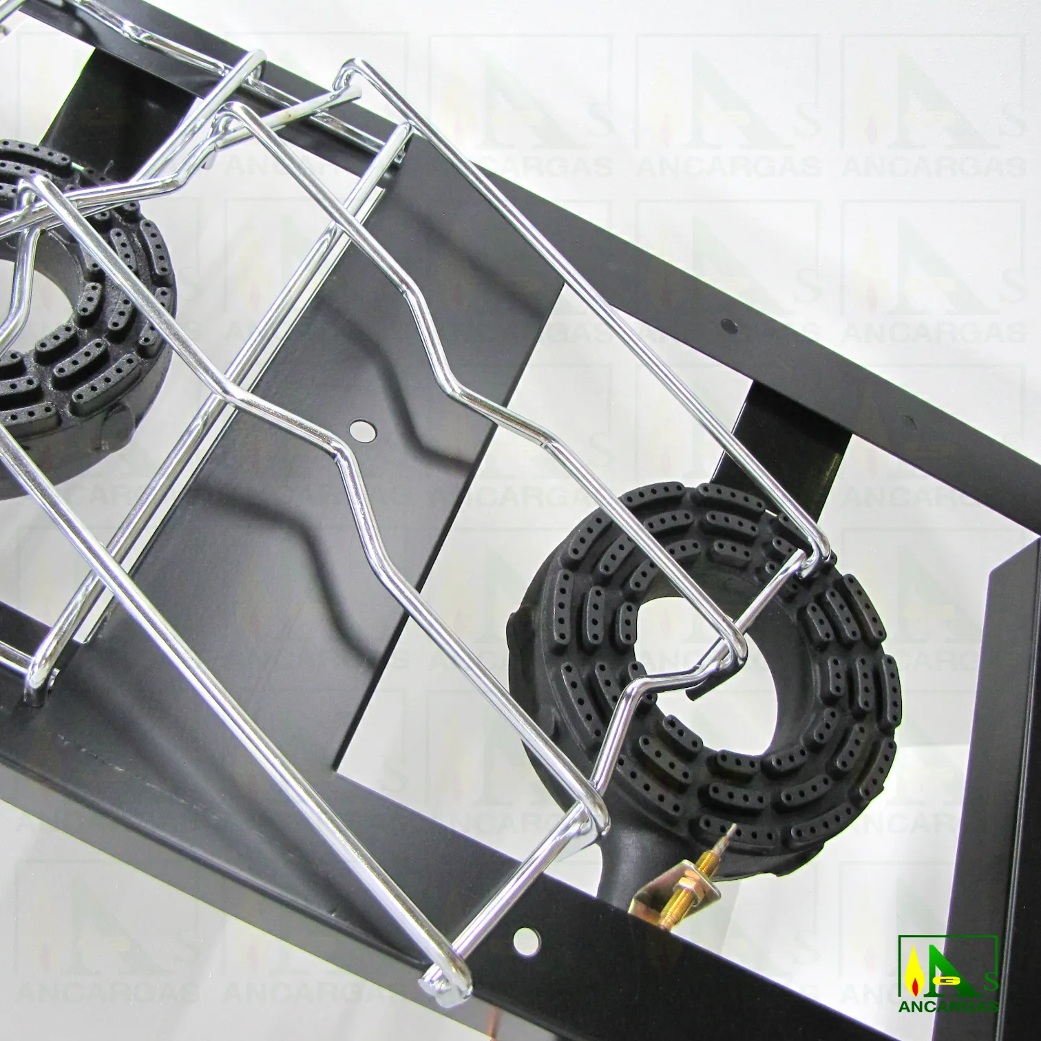 – Soporte intermedio en hilo de acero cromado – Presiones: butano 28/38 mbar, propano 37 mbar.