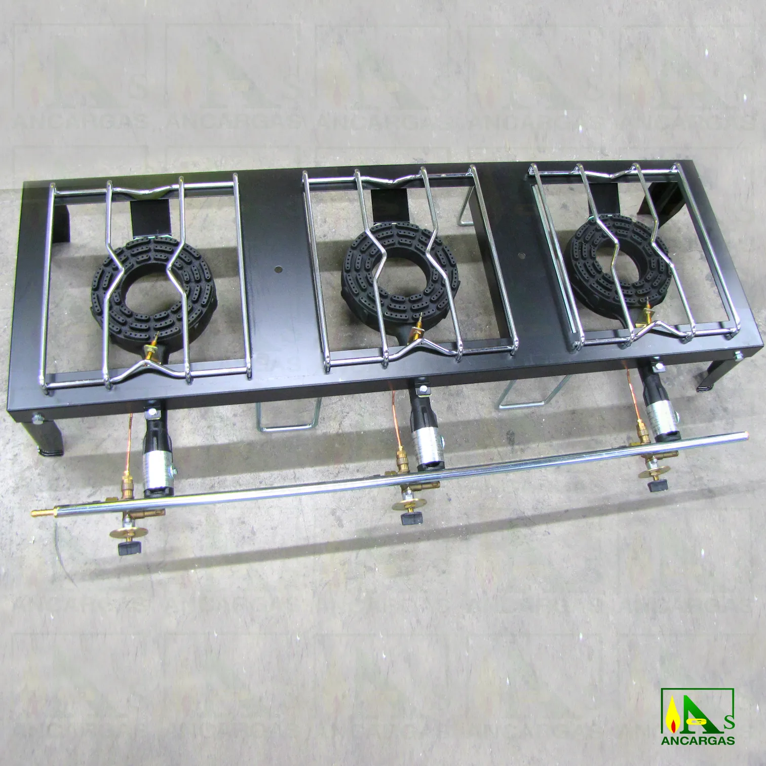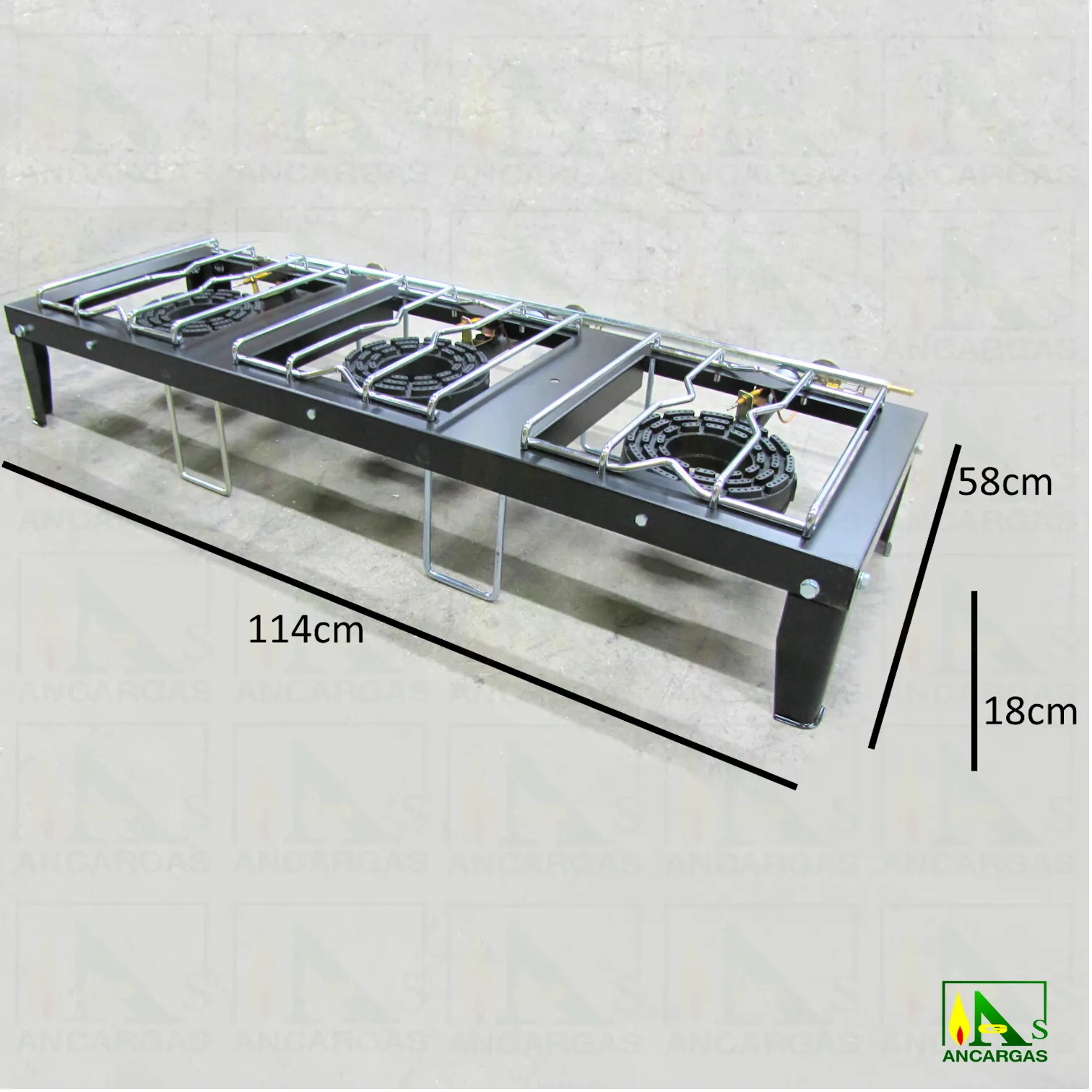 – Tres quemadores de función – Bastidos de 4 pies en acero