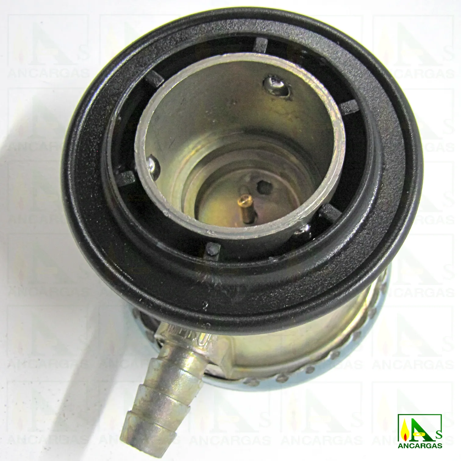 El regulador de baja presión se conecta a la válvula de la botella mediante un sistema de enchufe rápido, reduciendo la presión del interior de la botella a la presión de servicio. La regulación en dos etapas asegura una presión de salida óptima y constante.