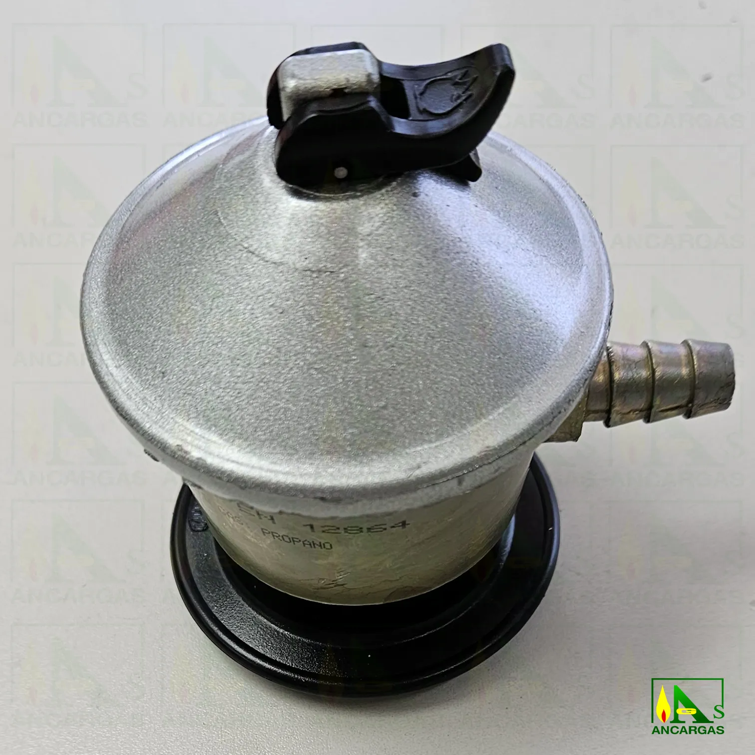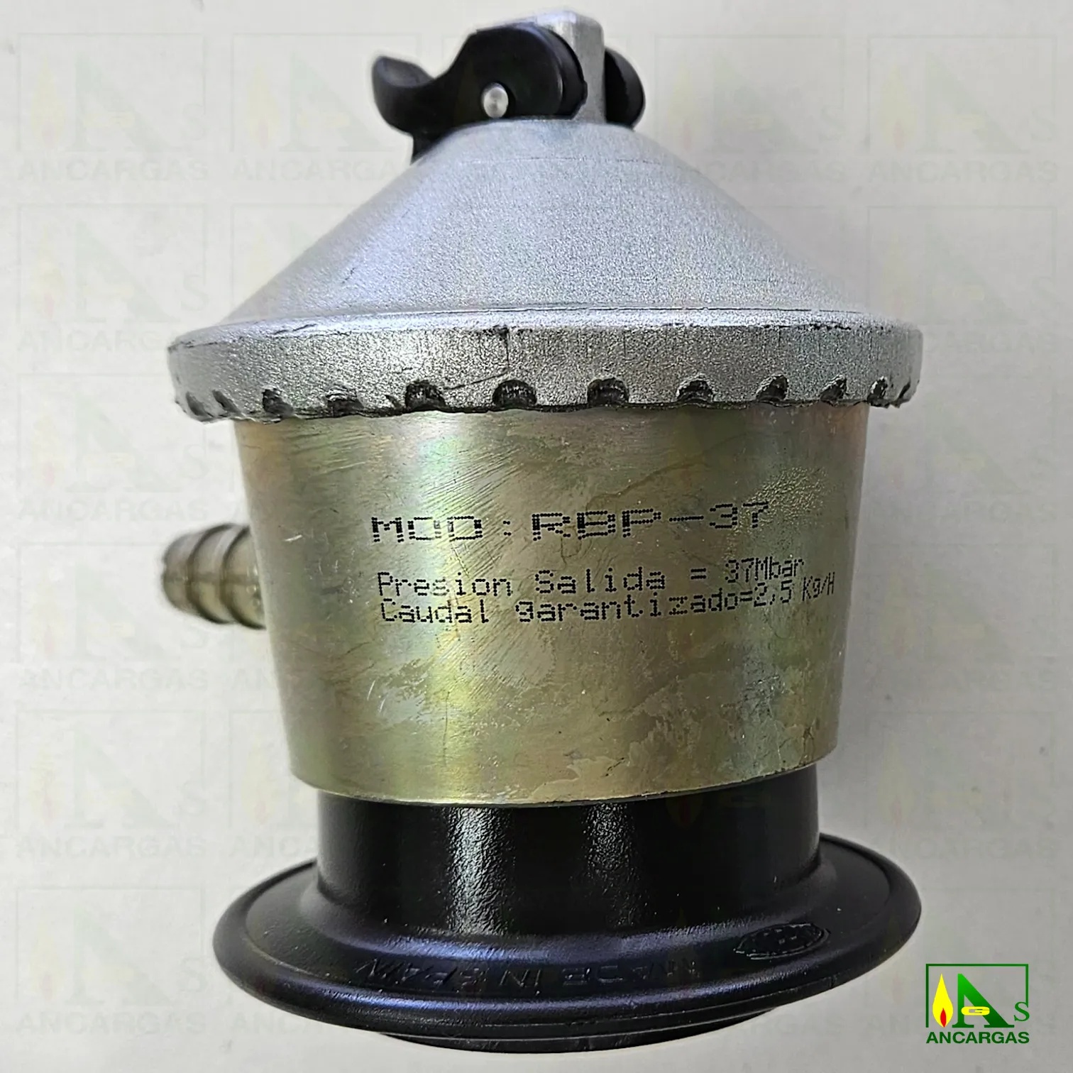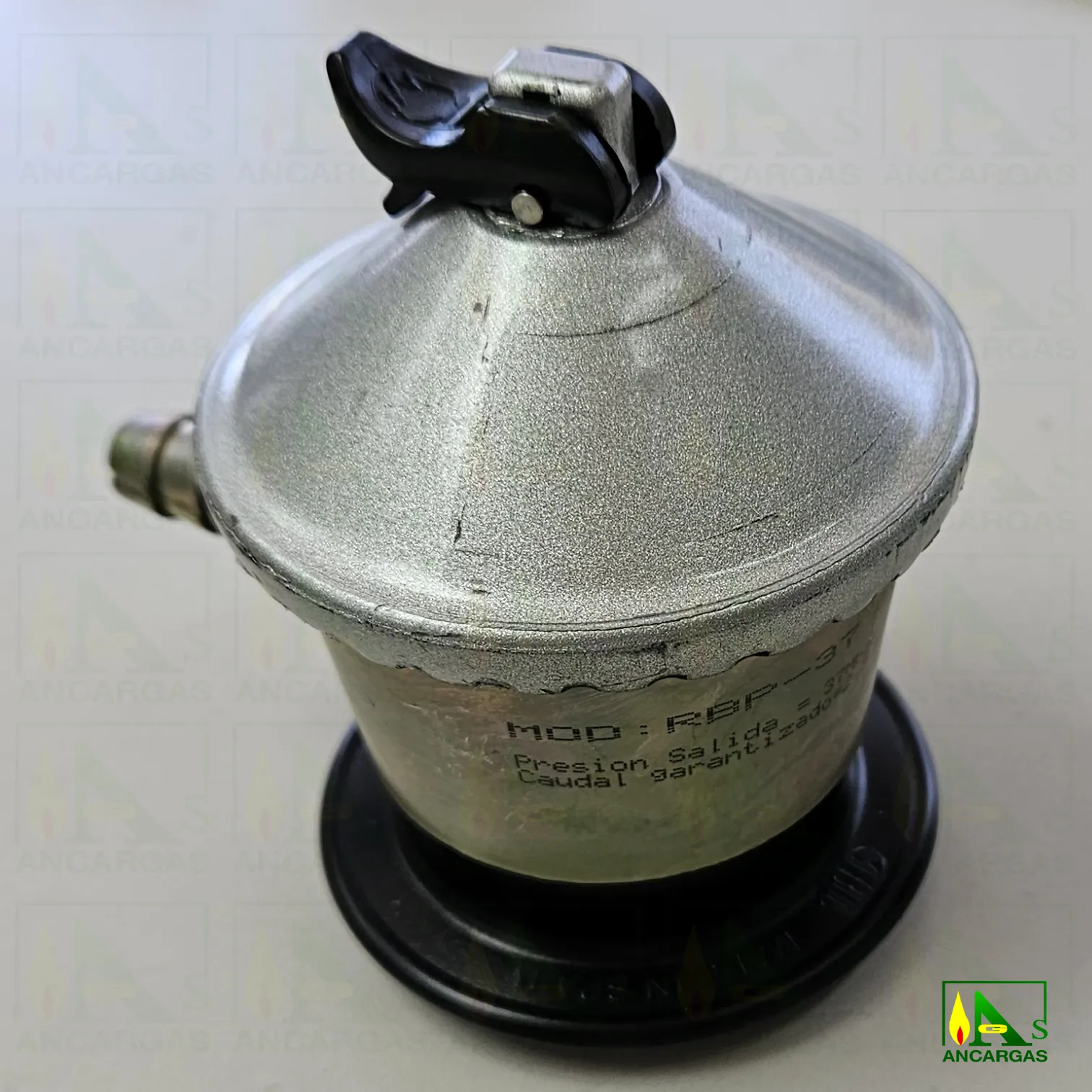 Regulador doméstico certificado Aenor gas butano/propano, presión salida 50g/cm²