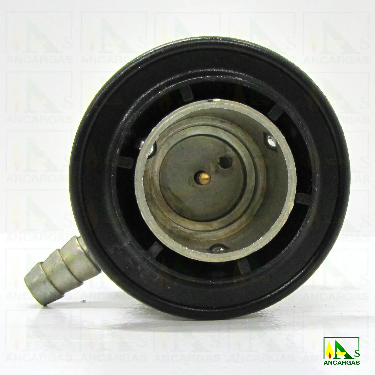 El regulador de baja presión se conecta a la válvula de la botella mediante un sistema de enchufe rápido, reduciendo la presión del interior de la botella a la presión de servicio. La regulación en dos etapas asegura una presión de salida óptima y constante.