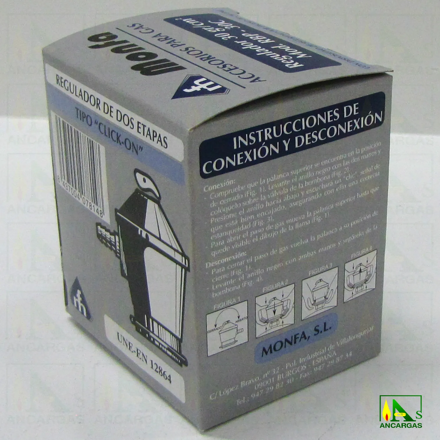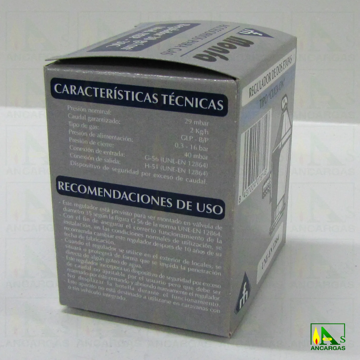 Regulador doméstico con seguridad homologado butano/propano, presión 30g/cm²