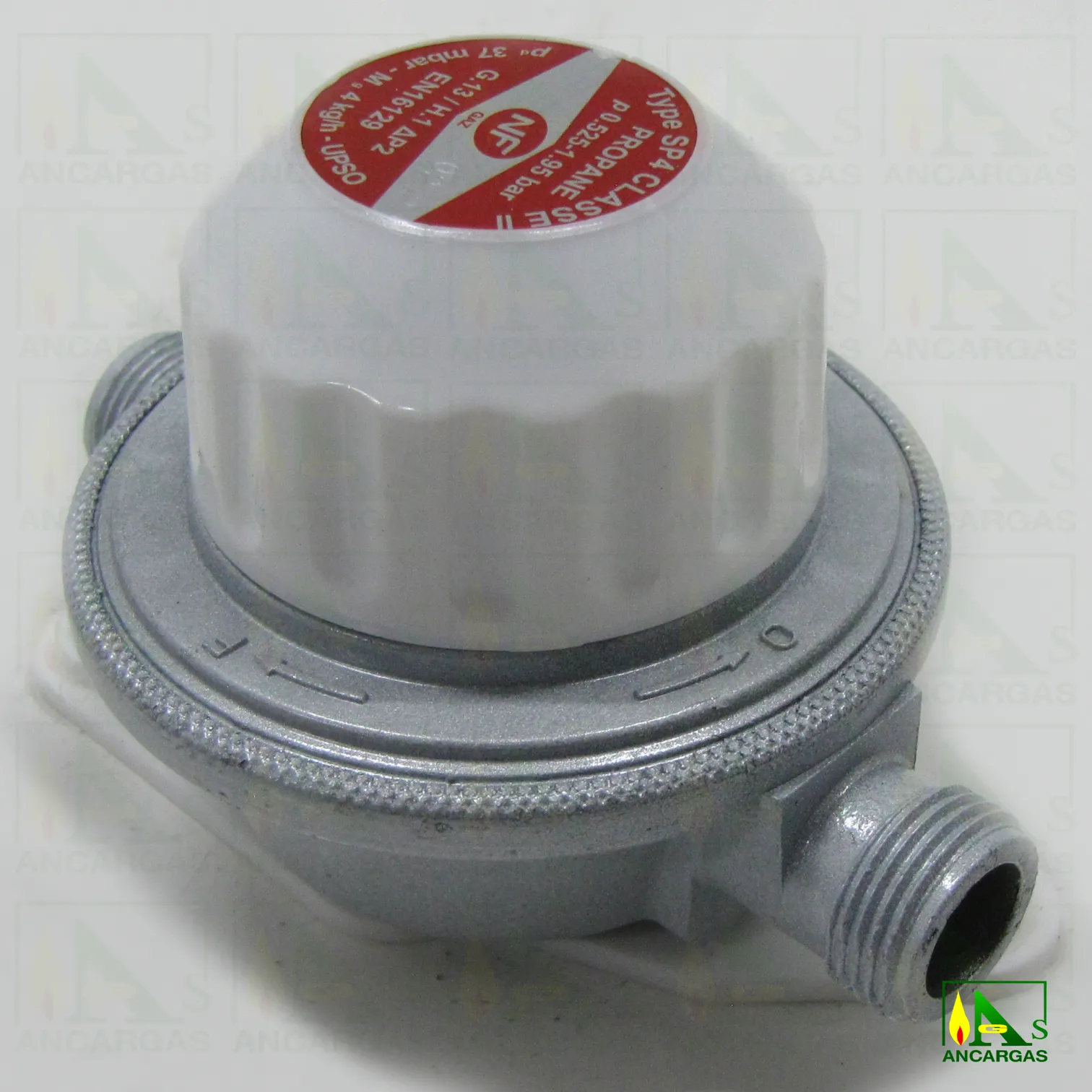 Asegura la presión a 37 mbar en una instalación de GLP equipado con una válvula de corte manual y válvula de seguridad por mínima presión.