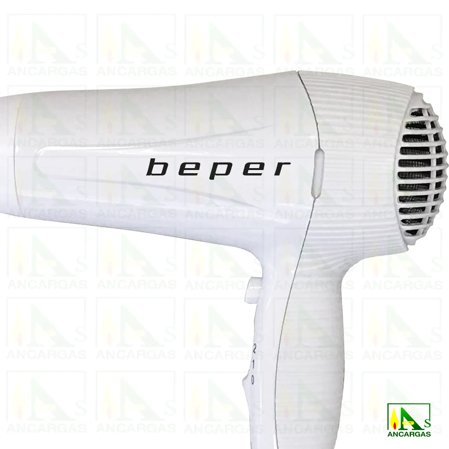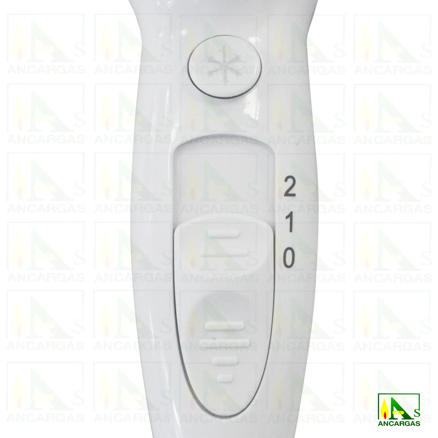 Secador de pelo compacto con dos velocidades diferentes seleccionables y botón de soplado de aire frío.