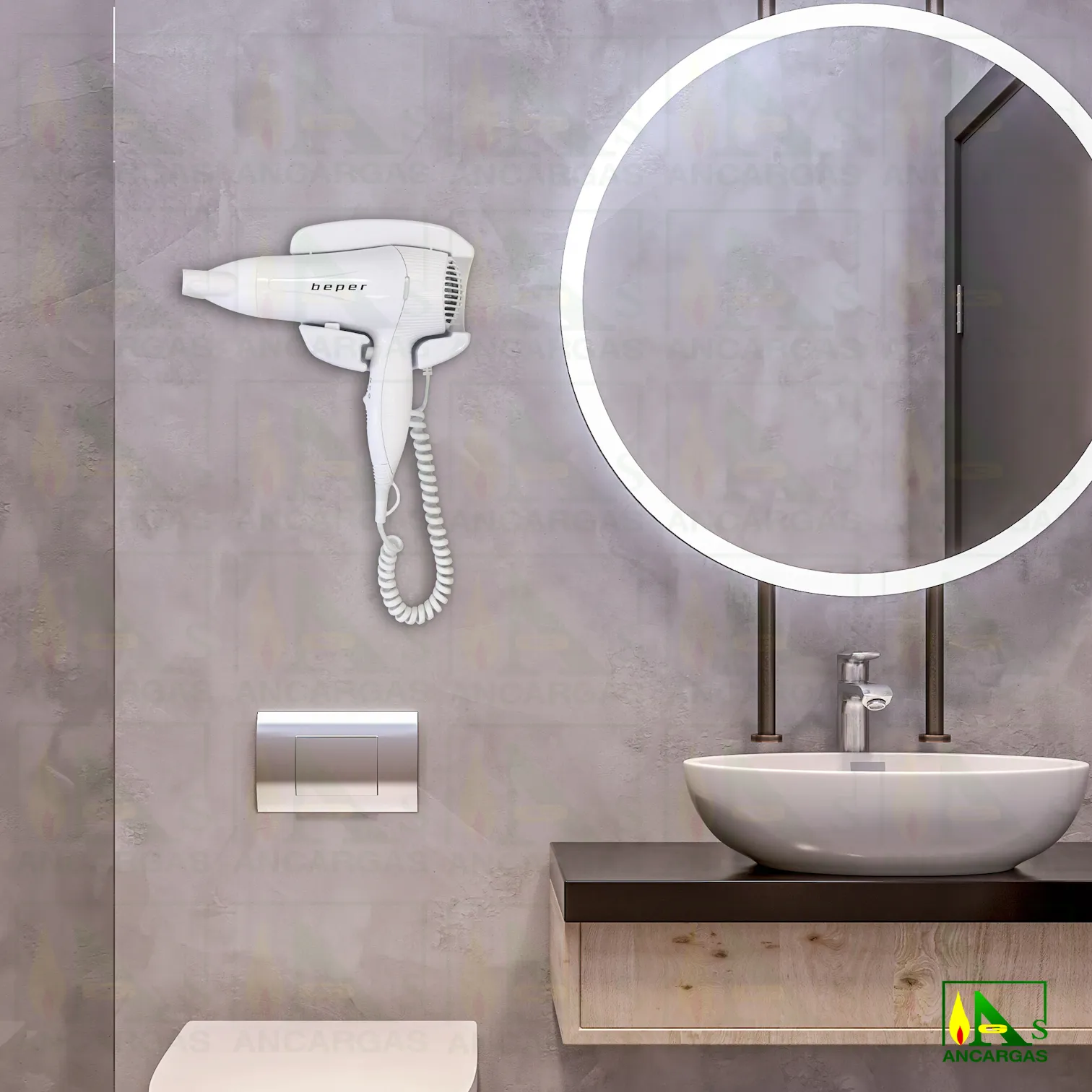 Equipado con soporte de pared con interruptor de encendido / apagado automático y conveniente cable de resorte extensible hasta 2m y cable desde base a enchufe de 0,8m.