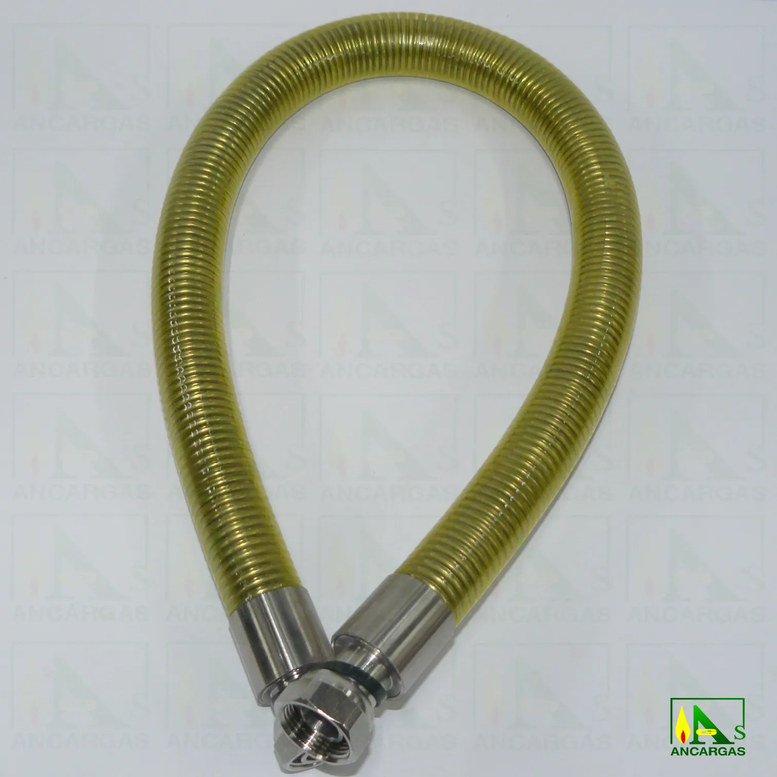 Conexiones flexibles inoxidables para aplicaciones industriales, compuesto por tubo corrugado de acero inoxidable AISI 316L provista de un aislamiento en PVC, tuercas de conexión fabricadas en INOX 303.