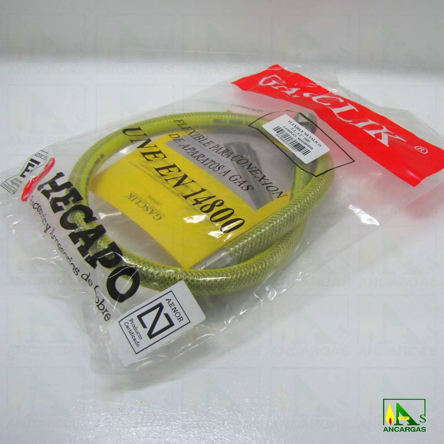 Gasclik, conexión flexible inoxidable con tuercas locas, se utiliza para el conexionado de los aparatos fijos a gas, según exigencia de la normativa vigente.