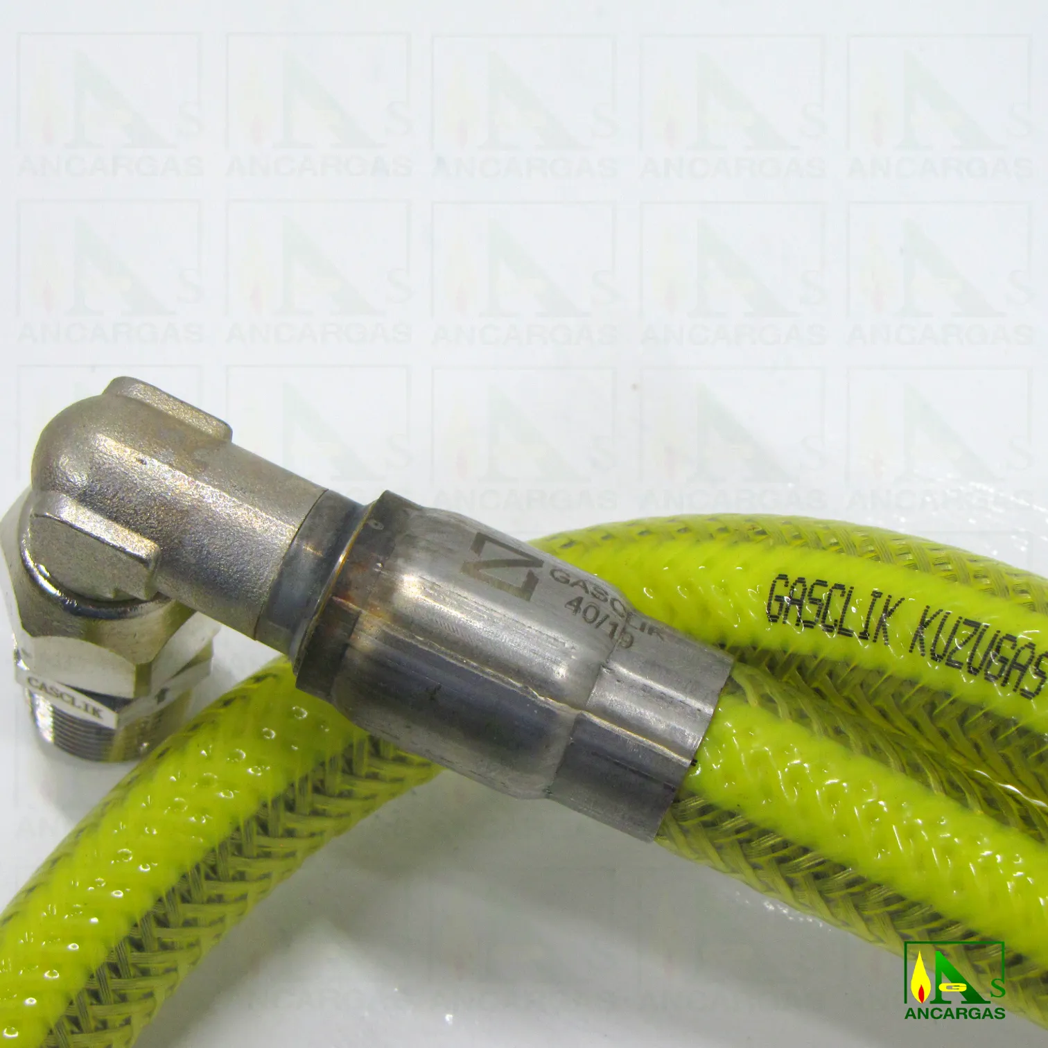 Tubo flexible inoxidable Gasclik con válvula de seguridad MxM 1/2″ (macho-macho) para GLP / GN. Longitud 1500 mm.