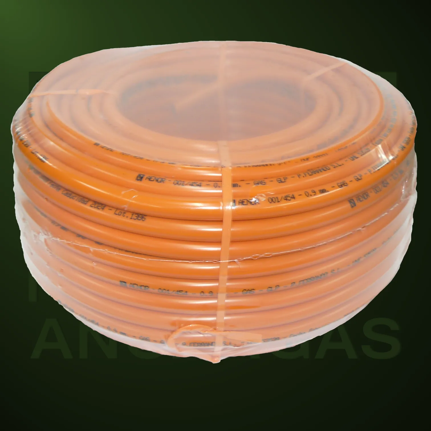 Tubo naranja manguera butano diámetro 9 x 15 mm. Rollo de 60 metros.