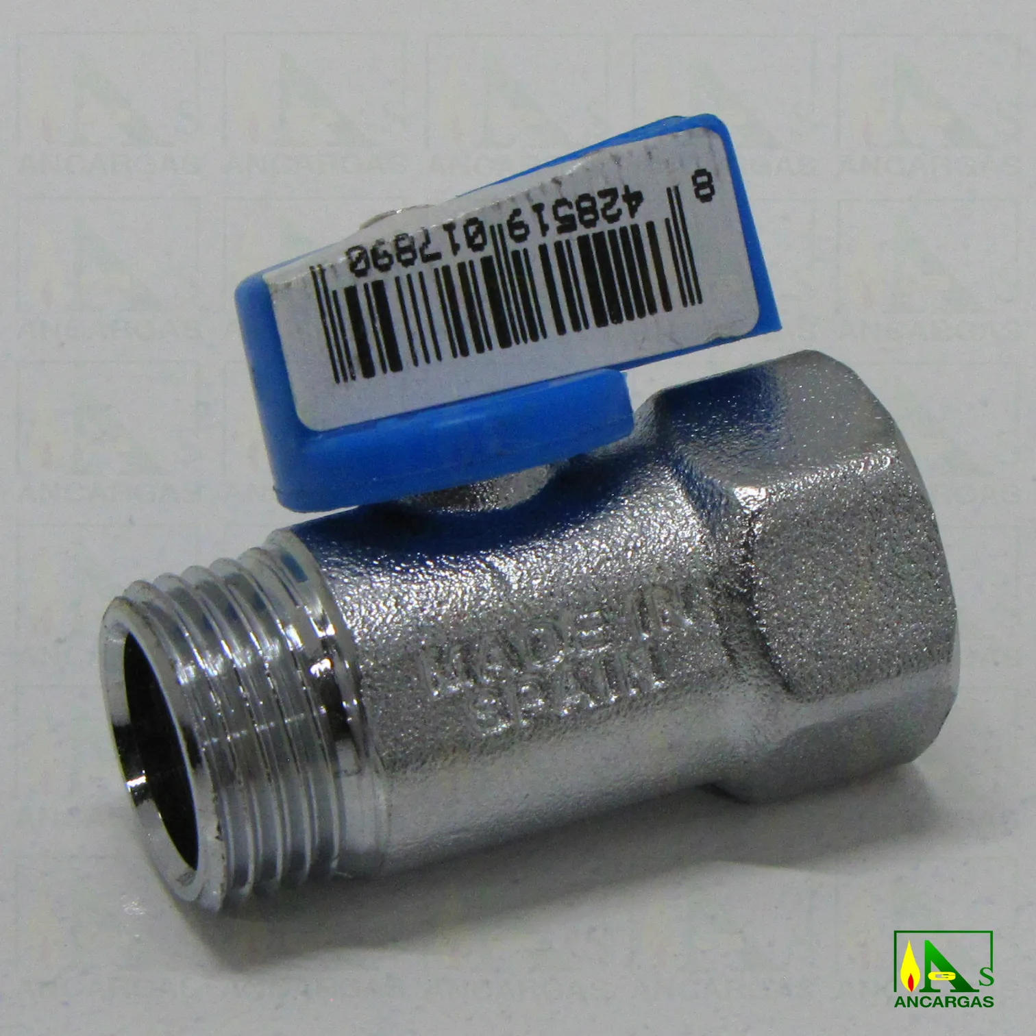 Válvula esfera mini en latón PN16 macho – hembra MxH 1/2” con mando ABS hexagonal azul
