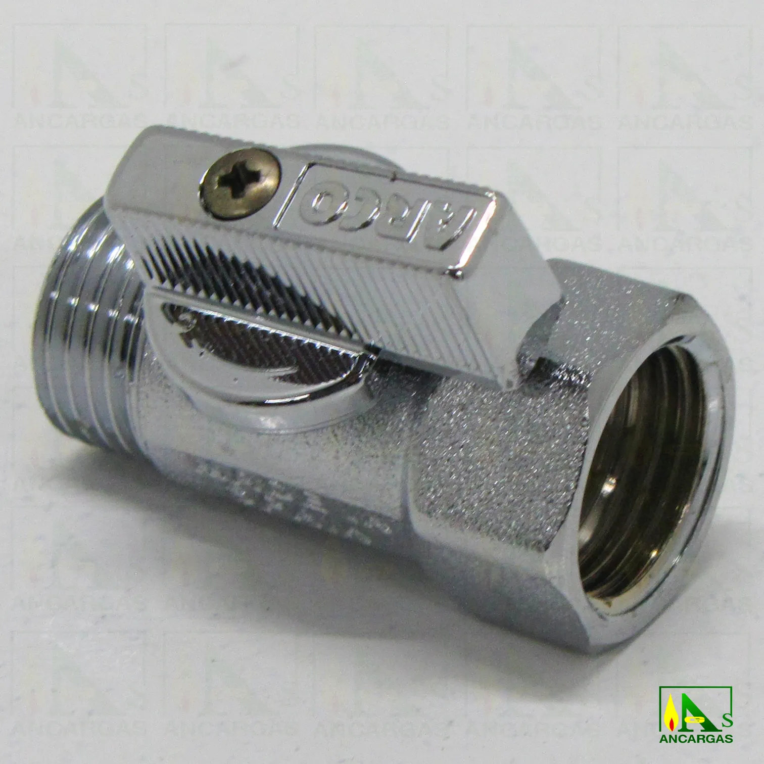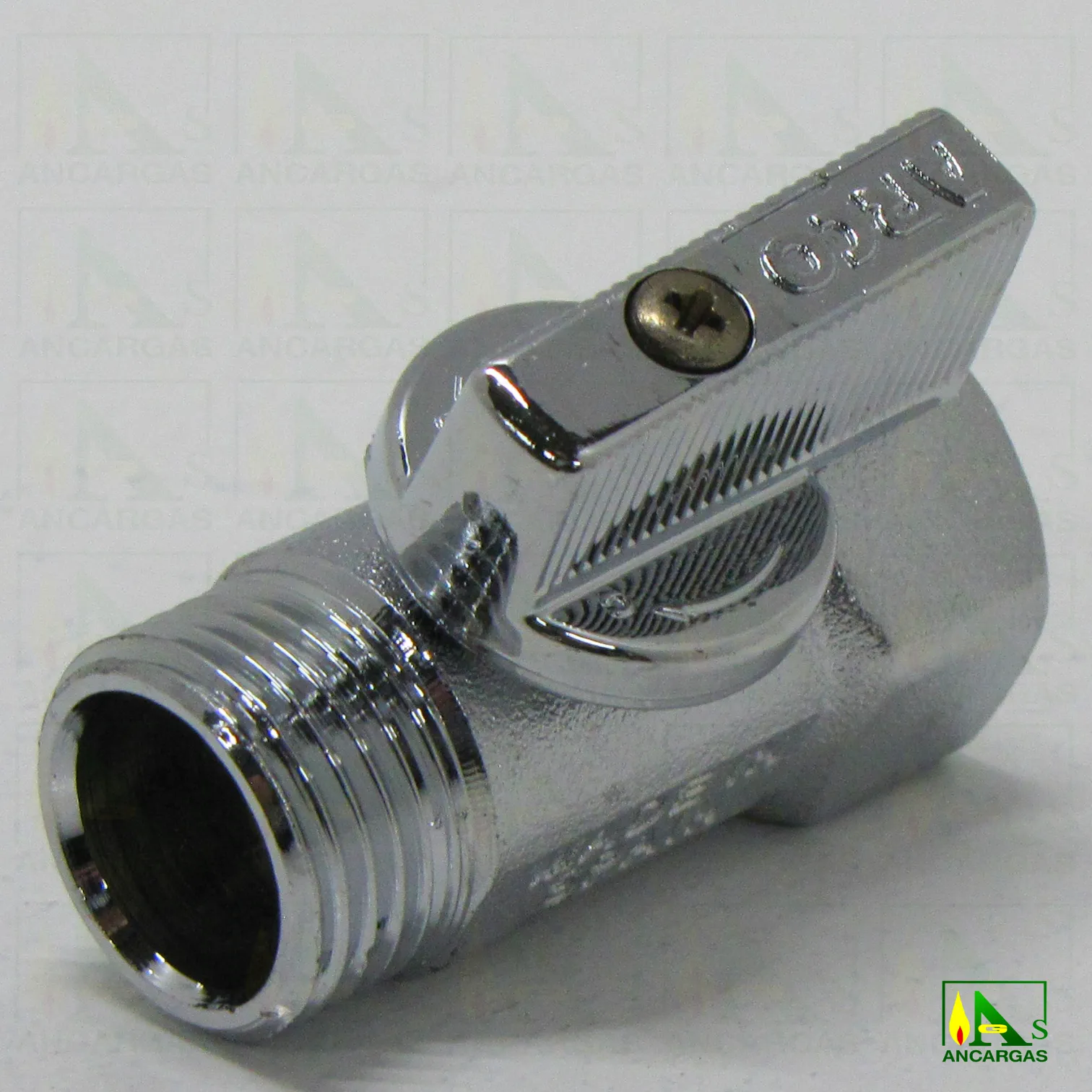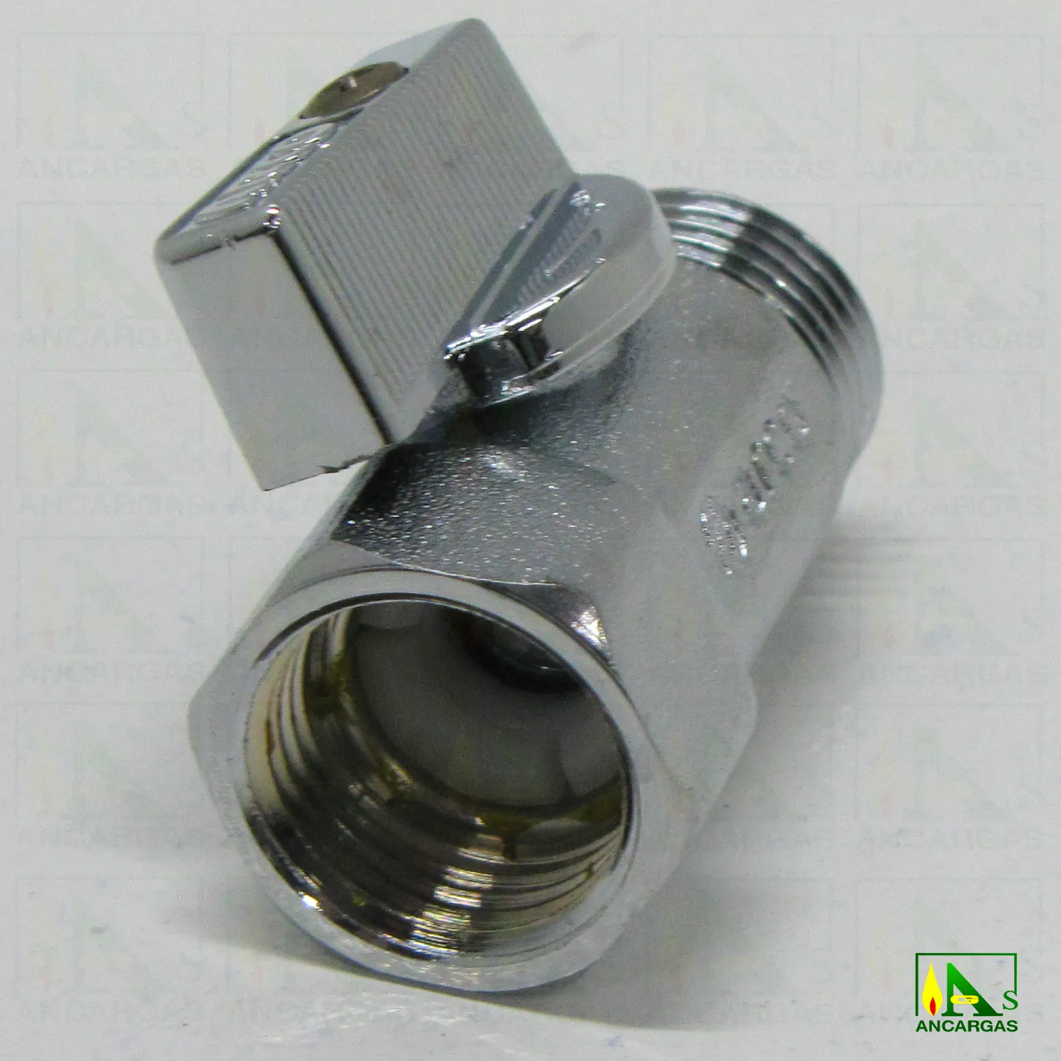 Válvula esfera mini en latón PN16 macho – hembra MxH 1/2” con mando ABS hexagonal cromado