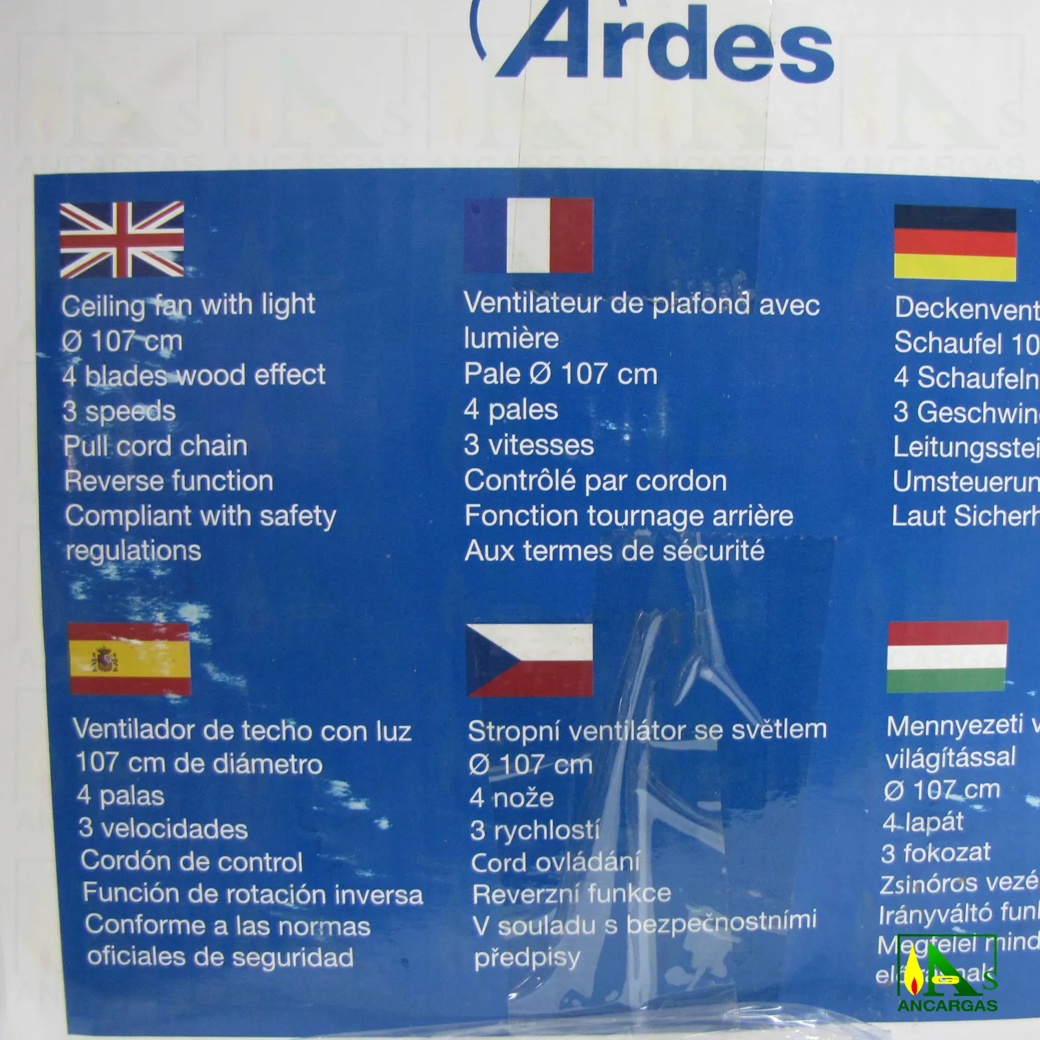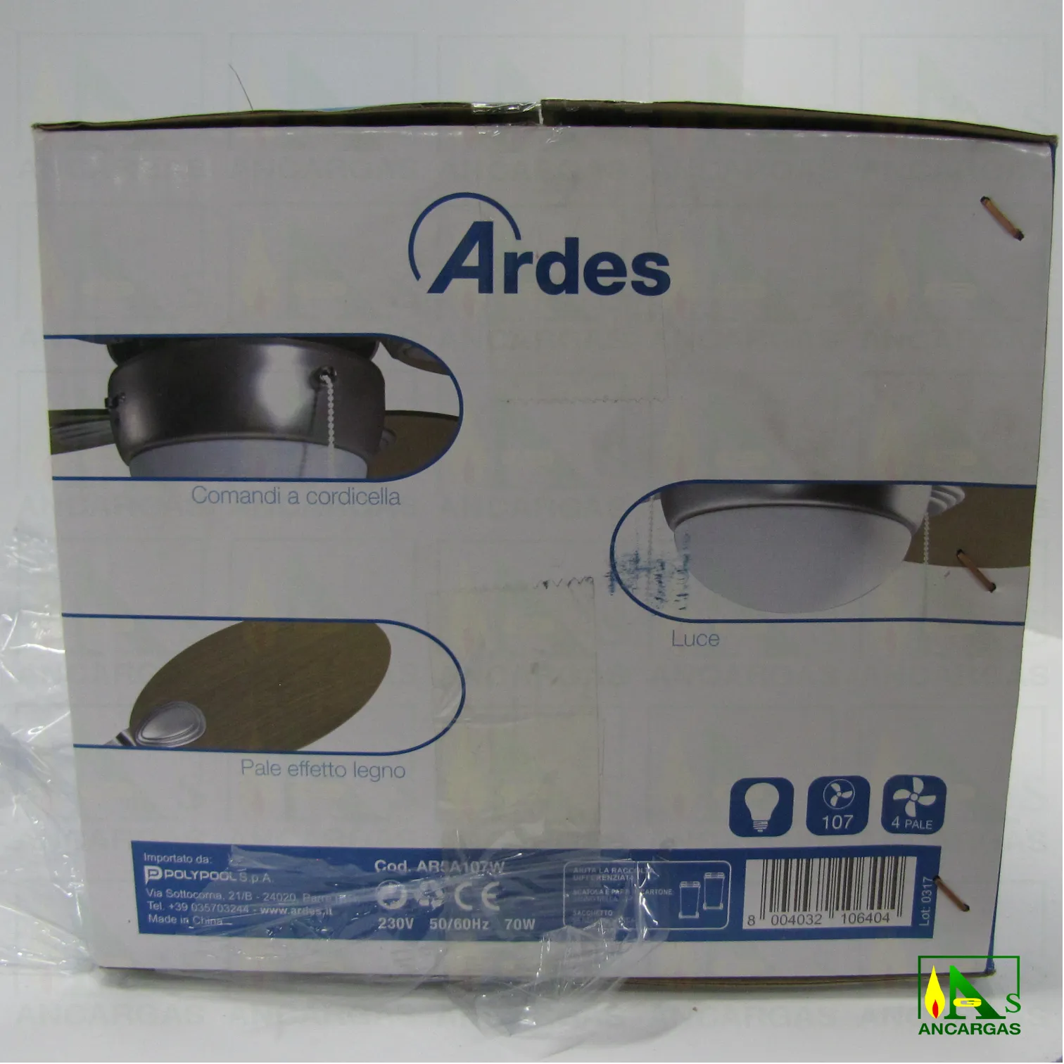 Ventilador de techo acero con luz Ardes a 4 palas de nogal Ø107cm 3 velocidades